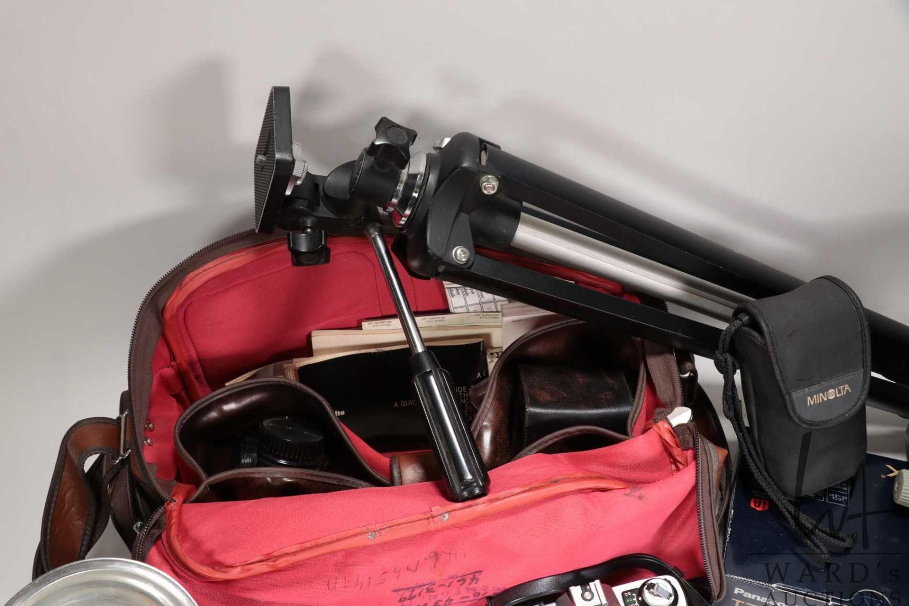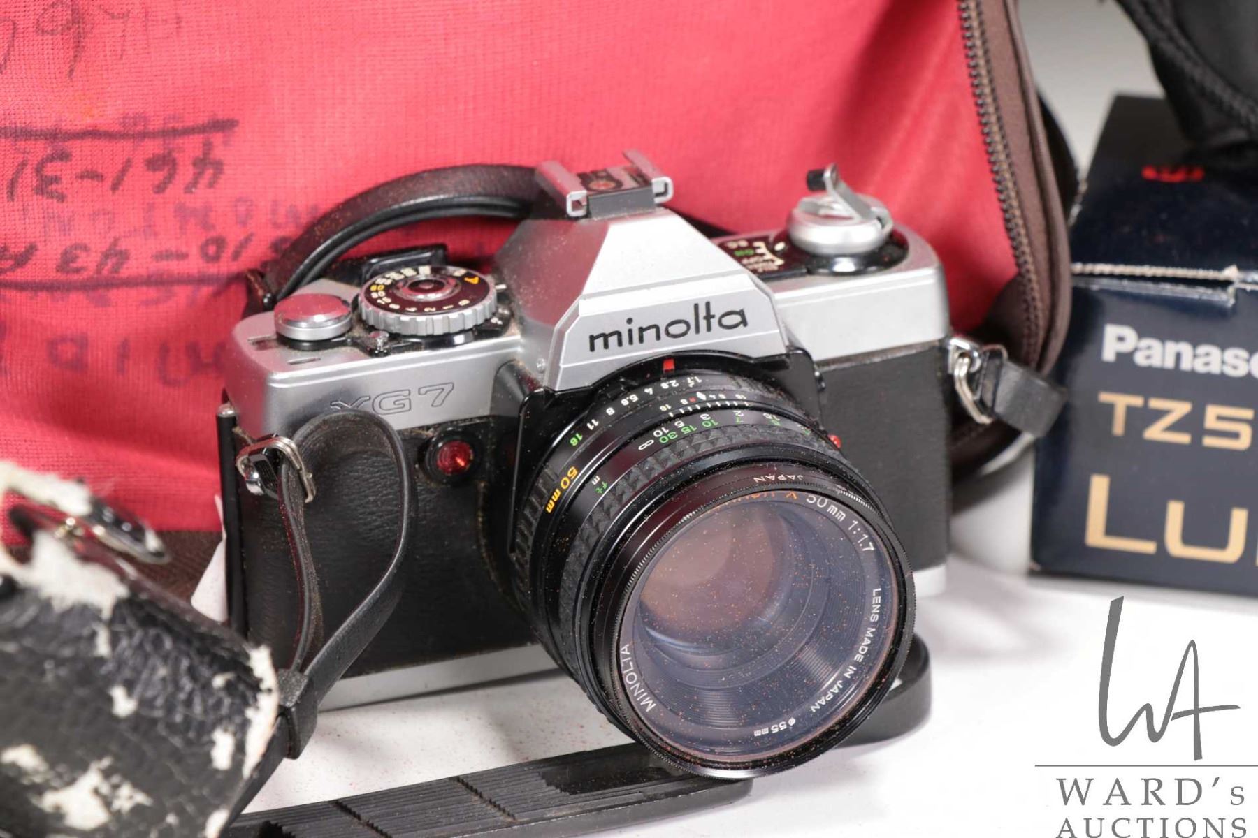 Selection of vintage camera equipment including Minolta Model XG7 camera with two lenses, flash etc.