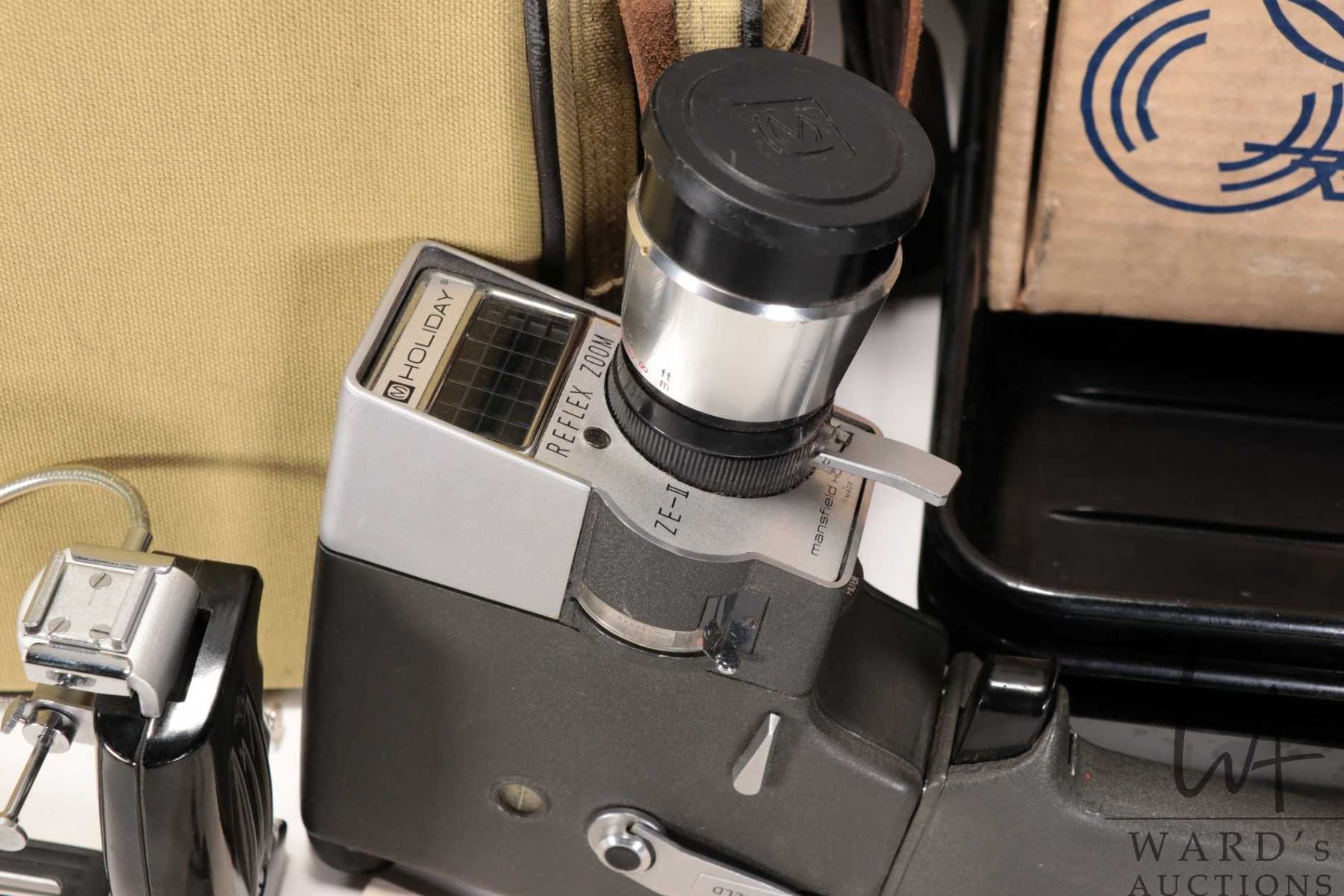 Selection of vintage cameras and accessories including Mansfield Holiday Japanese made ZE-II movie c