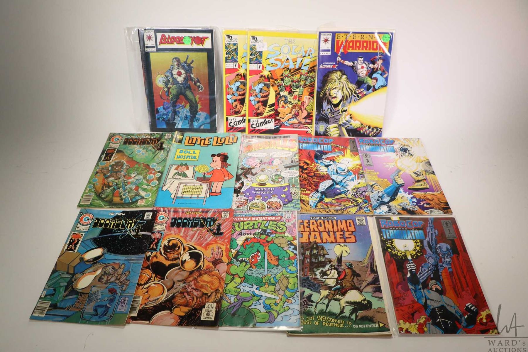 Selection of vintage comic books including Charlton, Star etc. including "Dooms Day, Robocop, Geronimo Jones, Ninja Turtles, Little Lulu etc.' ranging from 35 cents-$3.00, thirty two in total