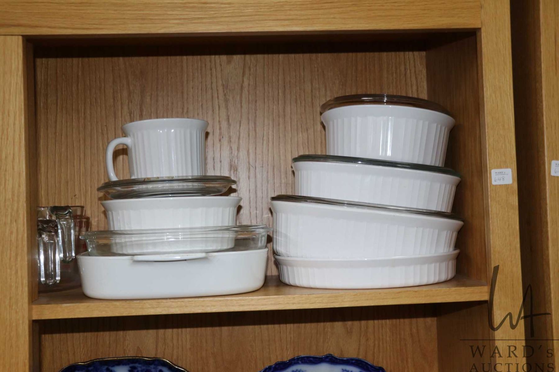 Selection of vintage cookware including five lidded casseroles, graduated measuring cups etc.