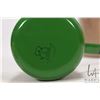 Selection of vintage enamel cookware including small kettle, and two Espresso measuring cups, an a