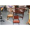 Selection of vintage furniture including drying rack, a small nursing rocker and a rocking stool