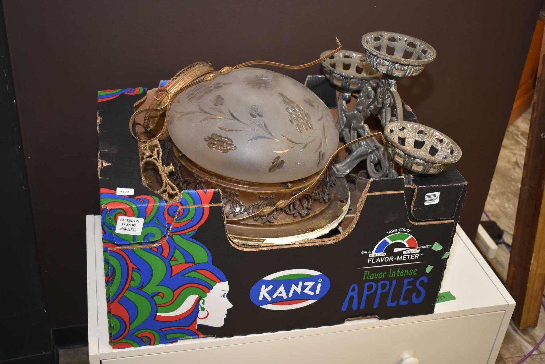 Selection of vintage lamp brackets, shades and parts NOTE: Shipping not available. Local bidders only.