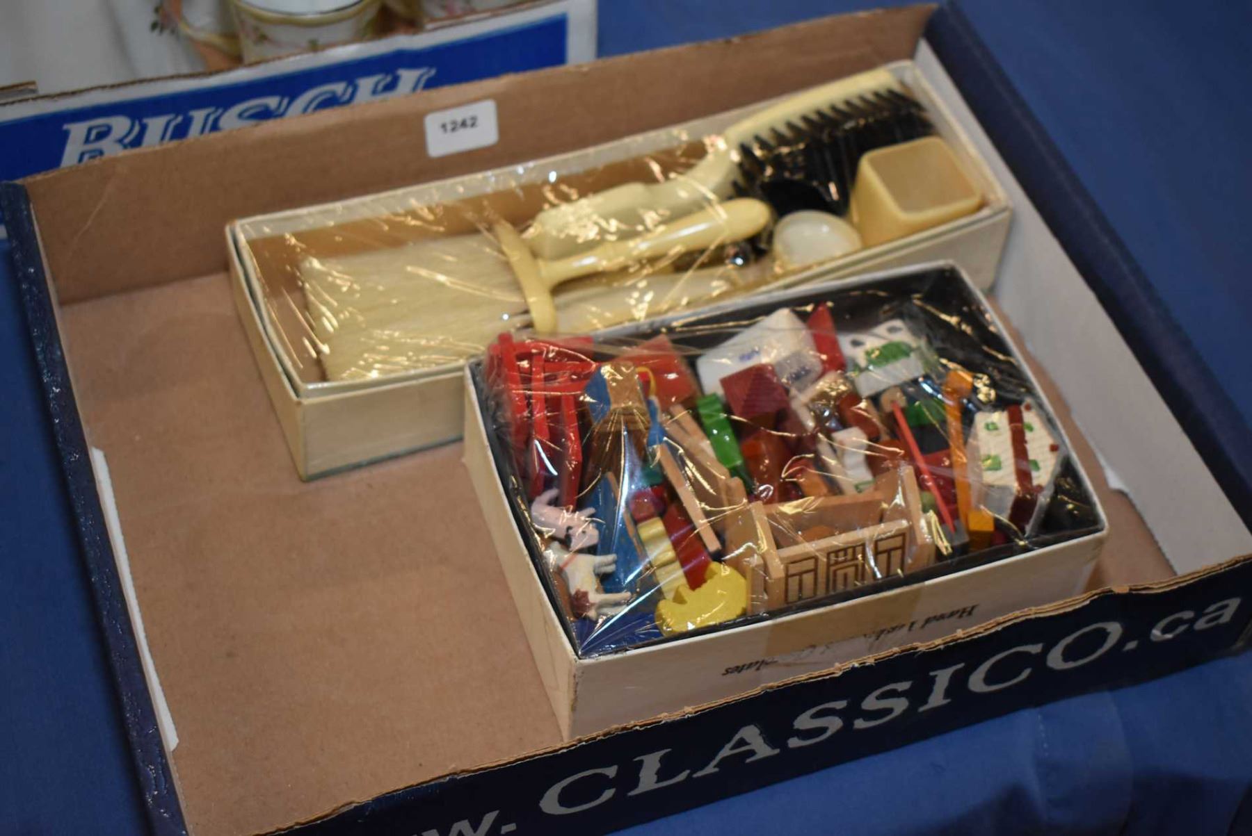 Selection of wooden miniature toys and French ivory dresser pieces etc.
