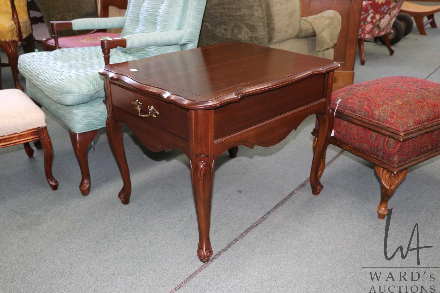 Semi contemporary French Provincial style, single drawer side table, 21" X 22" X 27"