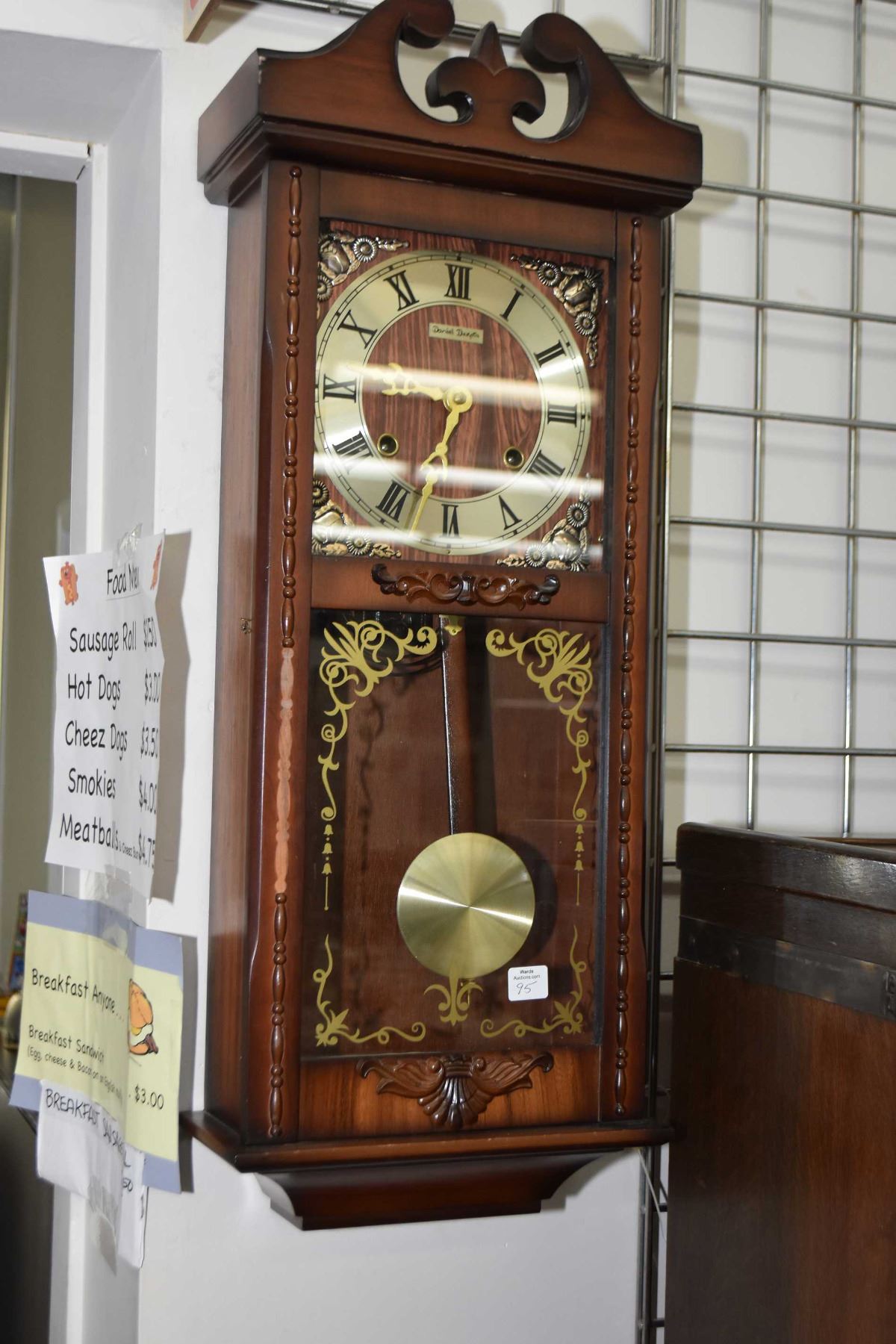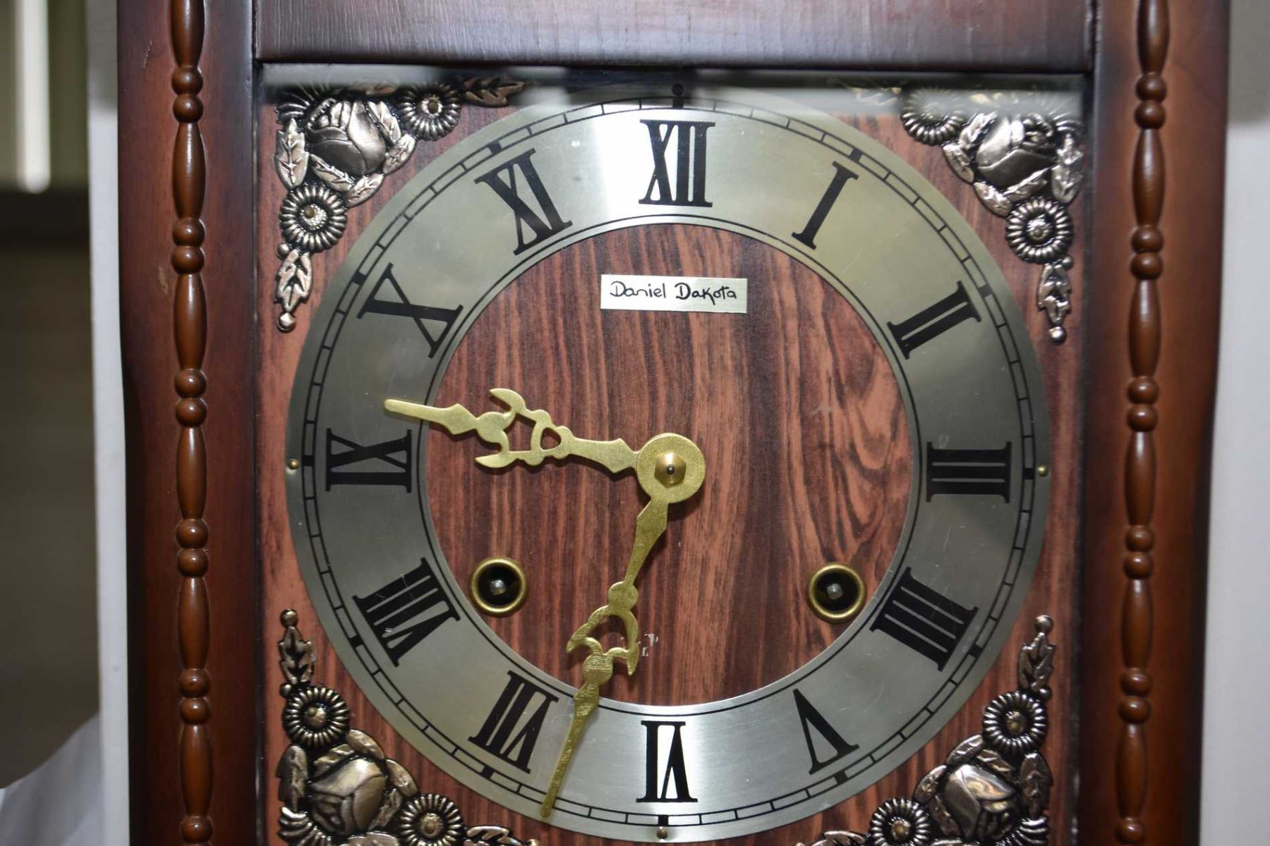 Semi contemporary chiming mantle clock with visible pendulum made by Daniel Dakota