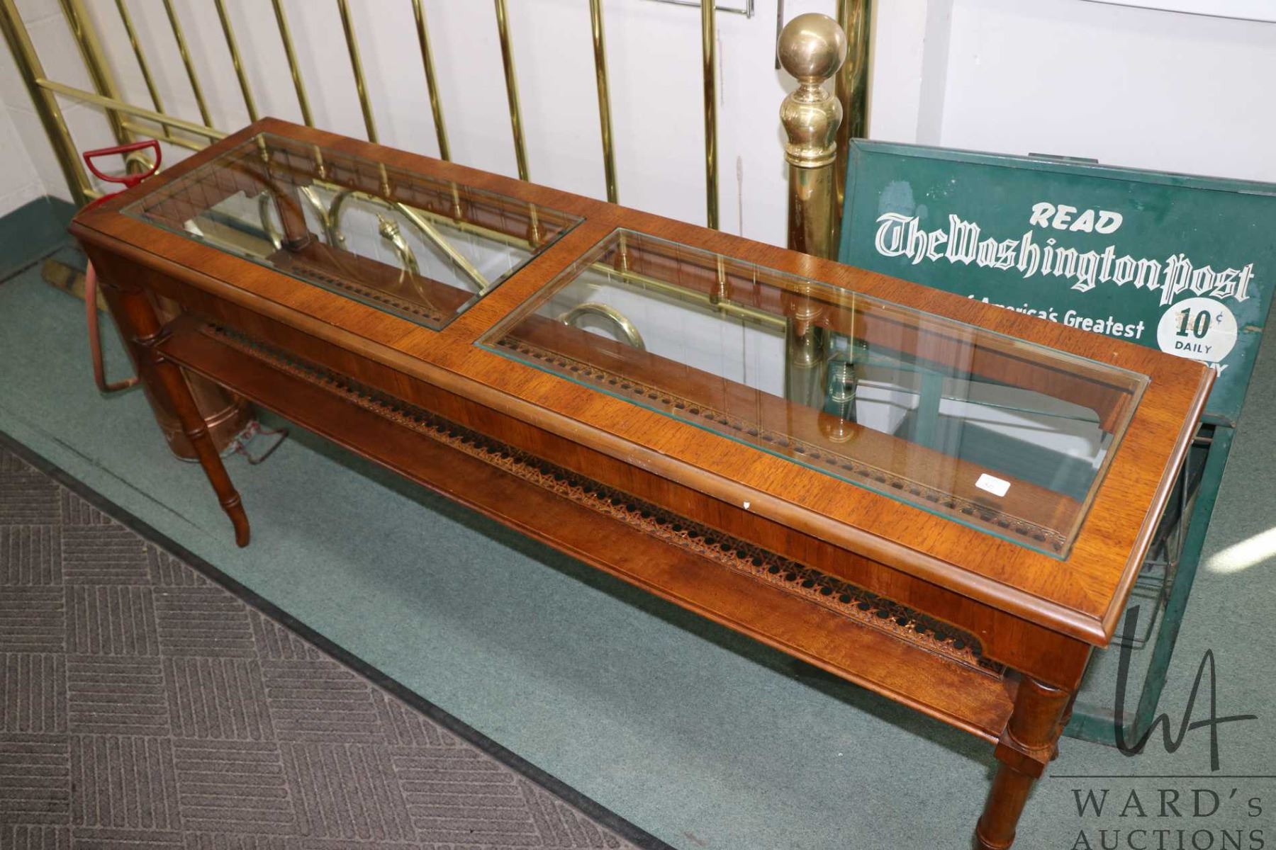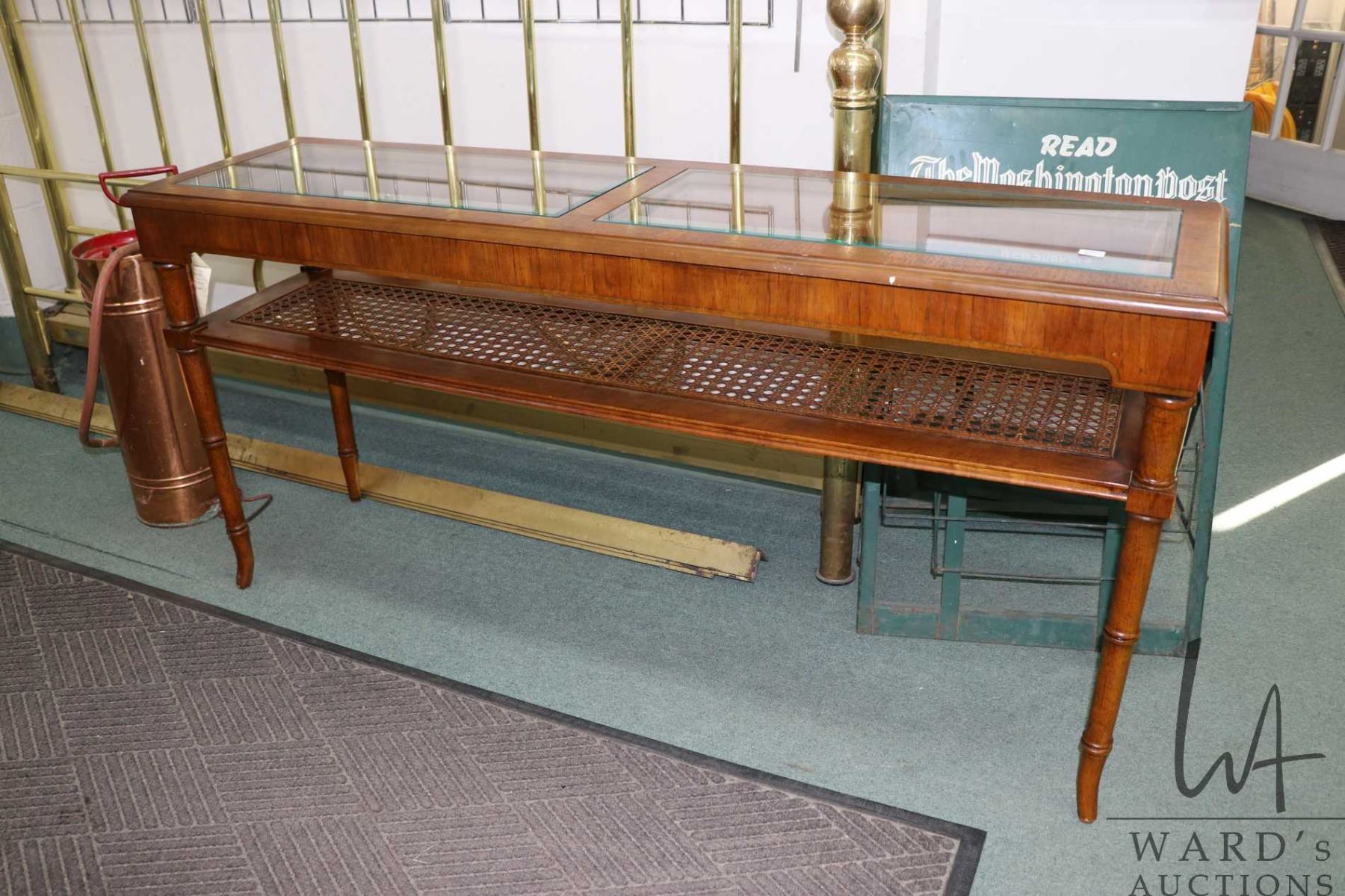 Semi contemporary console/ sofa table with faux bamboo legs, 26" H X 55" W X 15" D