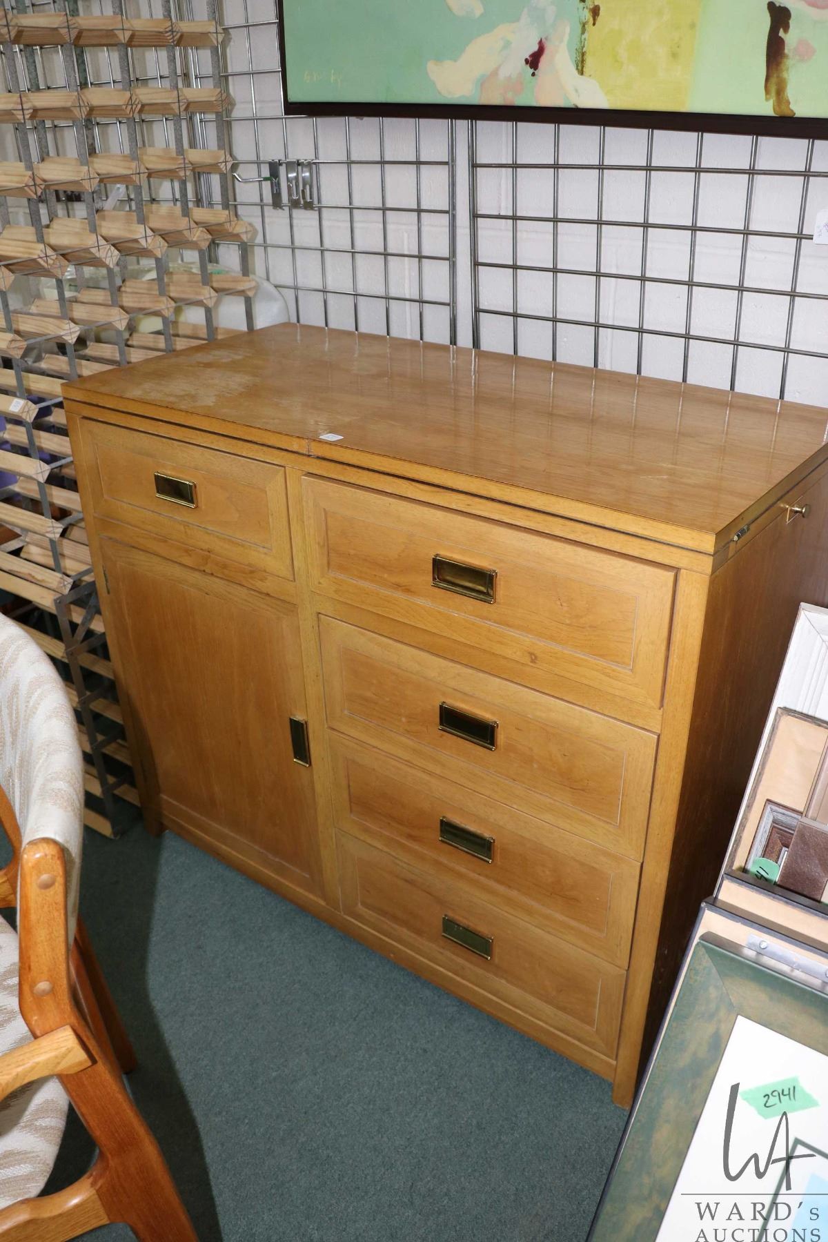 Semi contemporary dining room server with fold over, heat protected top, made by Thomasville, 34" H X 40" W X 19" D