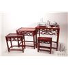Set of four diminutive set of Asian stacking tables, largest 11" in height and a selection of miniat