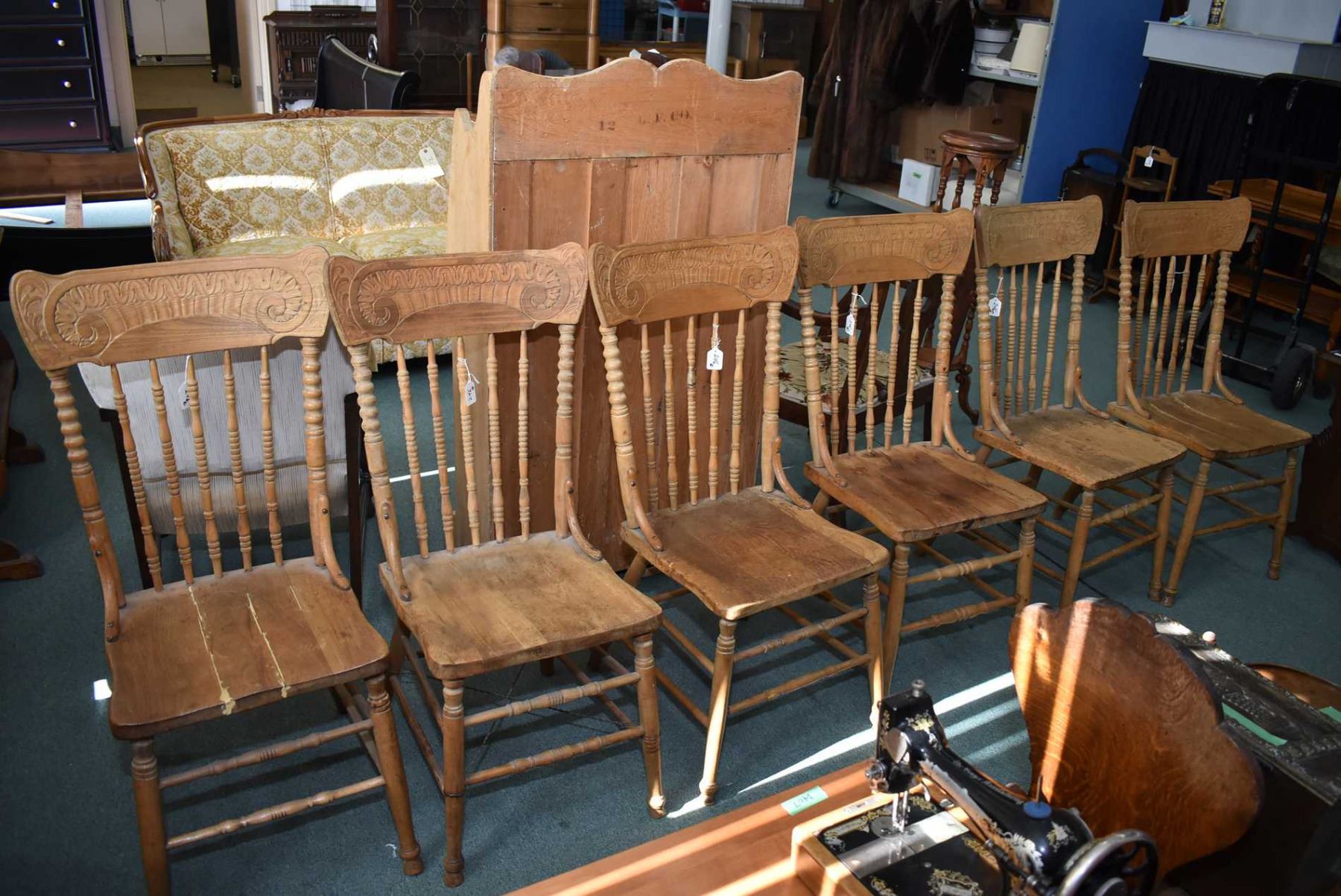 Set of six matching antique pressed back side chairs, stripped and ready for final prep. and finish