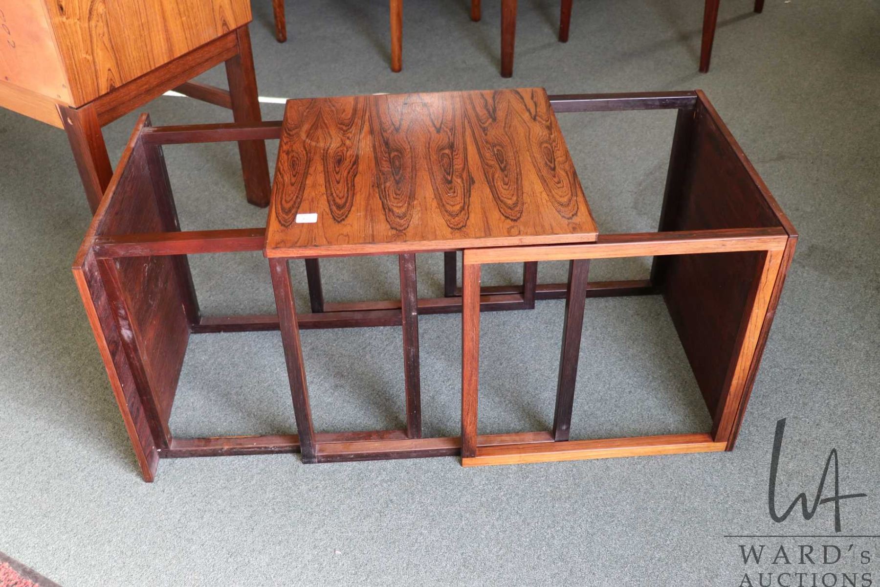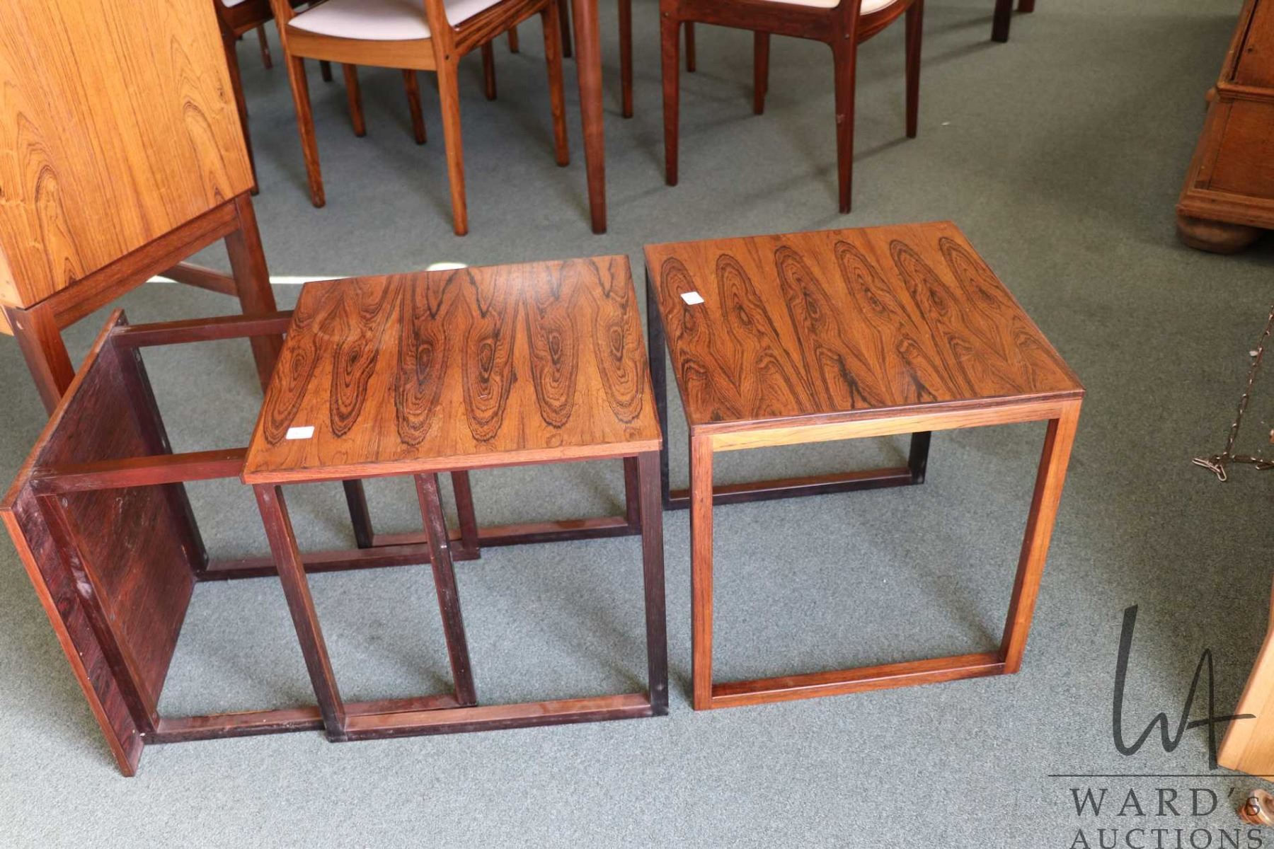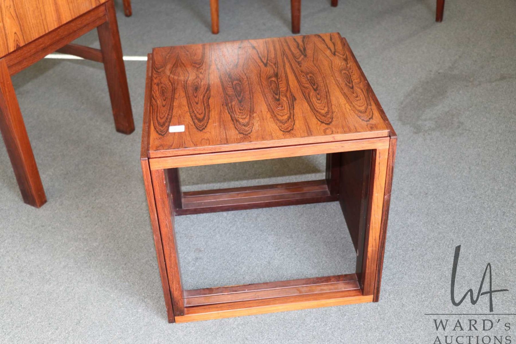 Set of three mid century modern cherry wood interlocking occasional tables, designed to form a cube