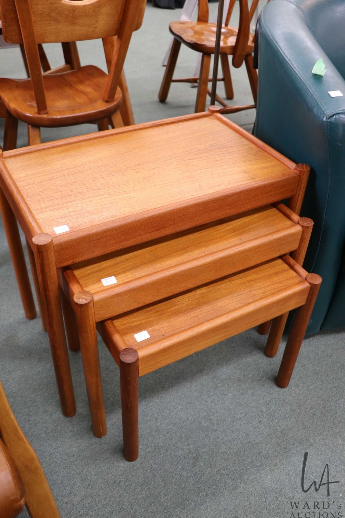 Set of three mid century modern style teak nesting tables