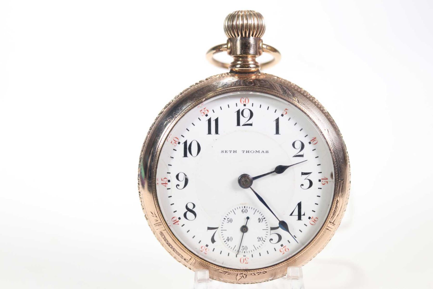 Seth Thomas size 18, 17 jewel pocket watch. Grade 182, model 5, serial #229502 dates this pocket wat