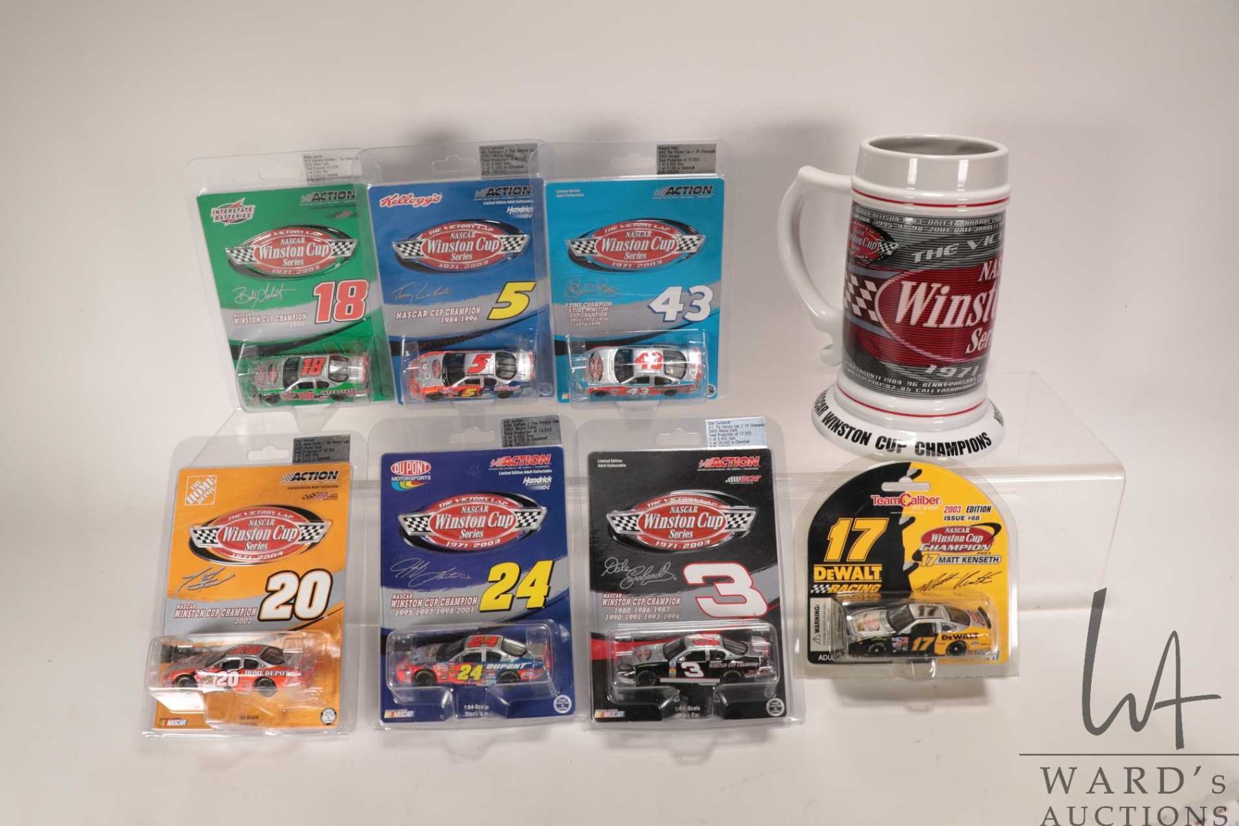 Seven 1: 64 scale die cast collectible race cars and a Winston Victory Lap Cup