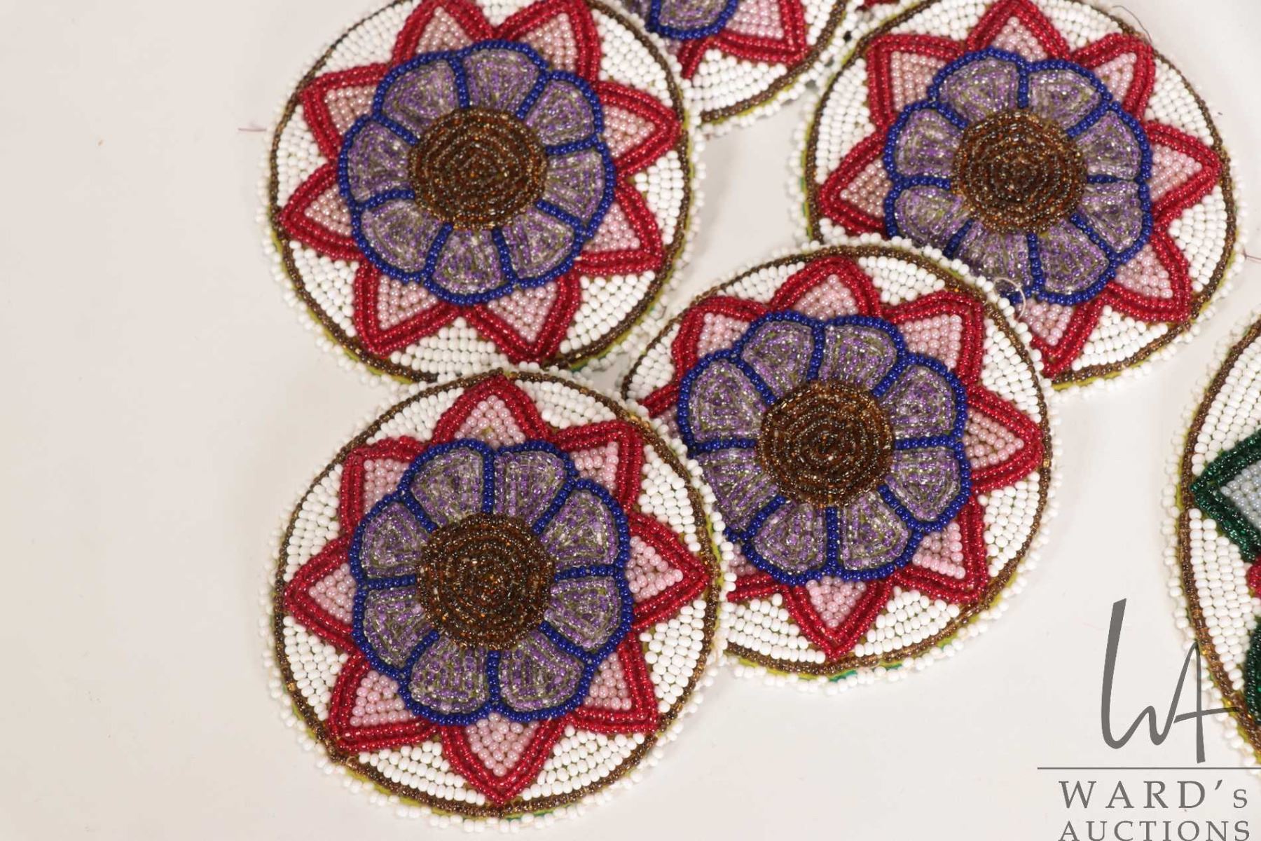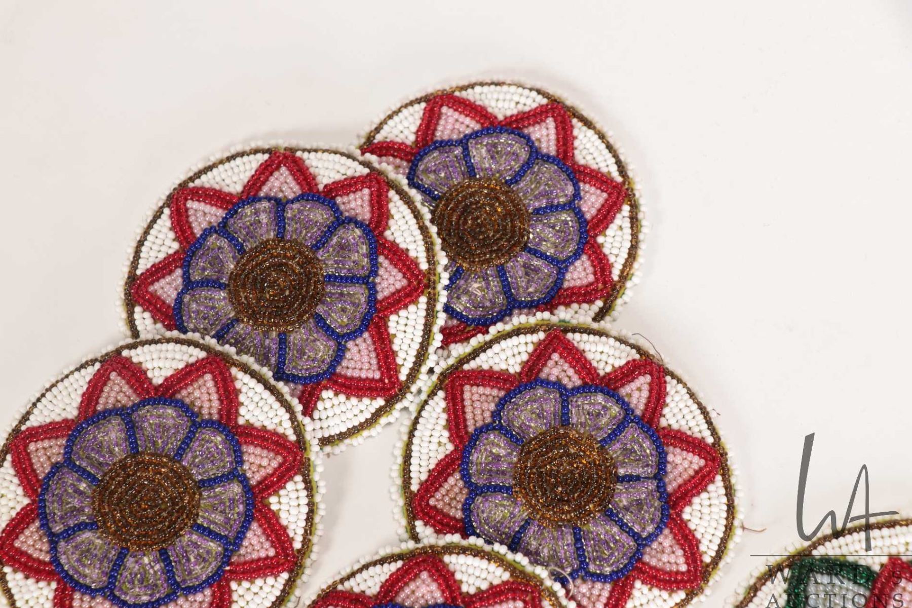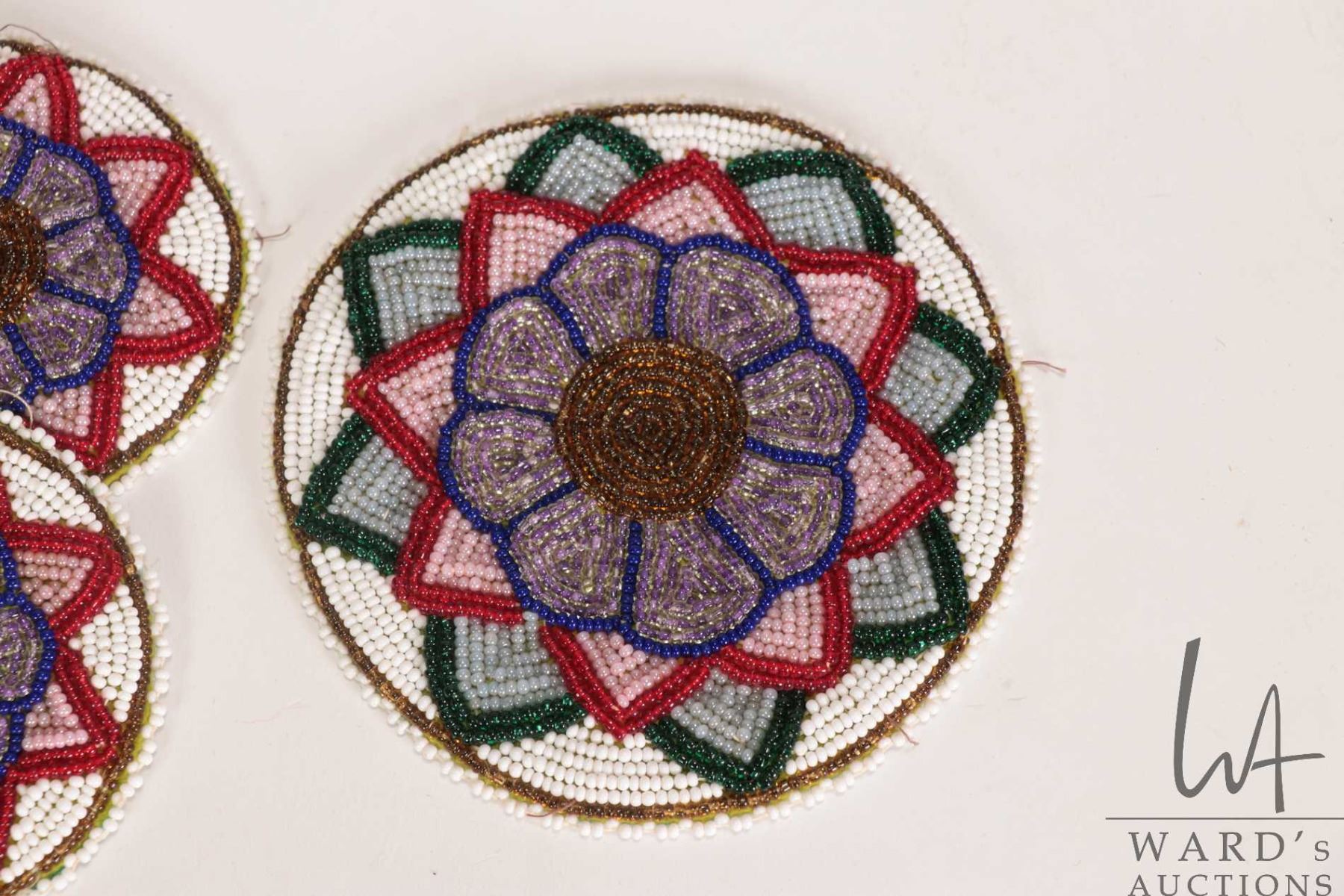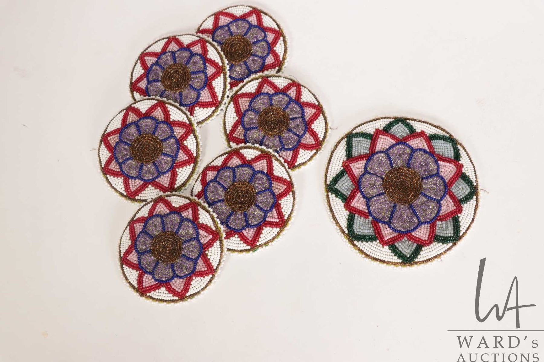 Seven Indigenous beaded mats including six 3 1/2" and a 4 3/4"