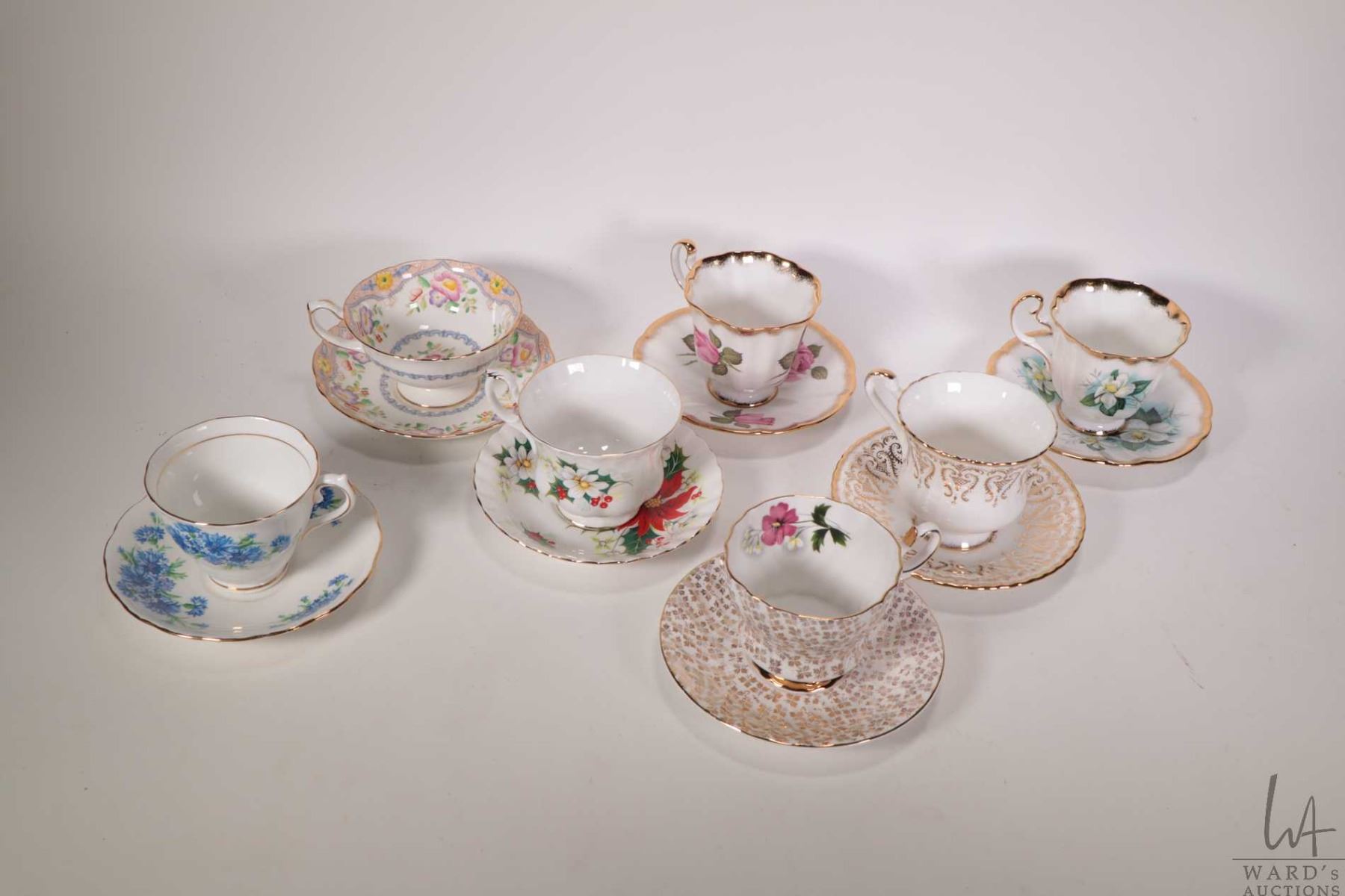 Seven china cups and saucers including Royal Albert, Royal Adderley, Hammersley etc.