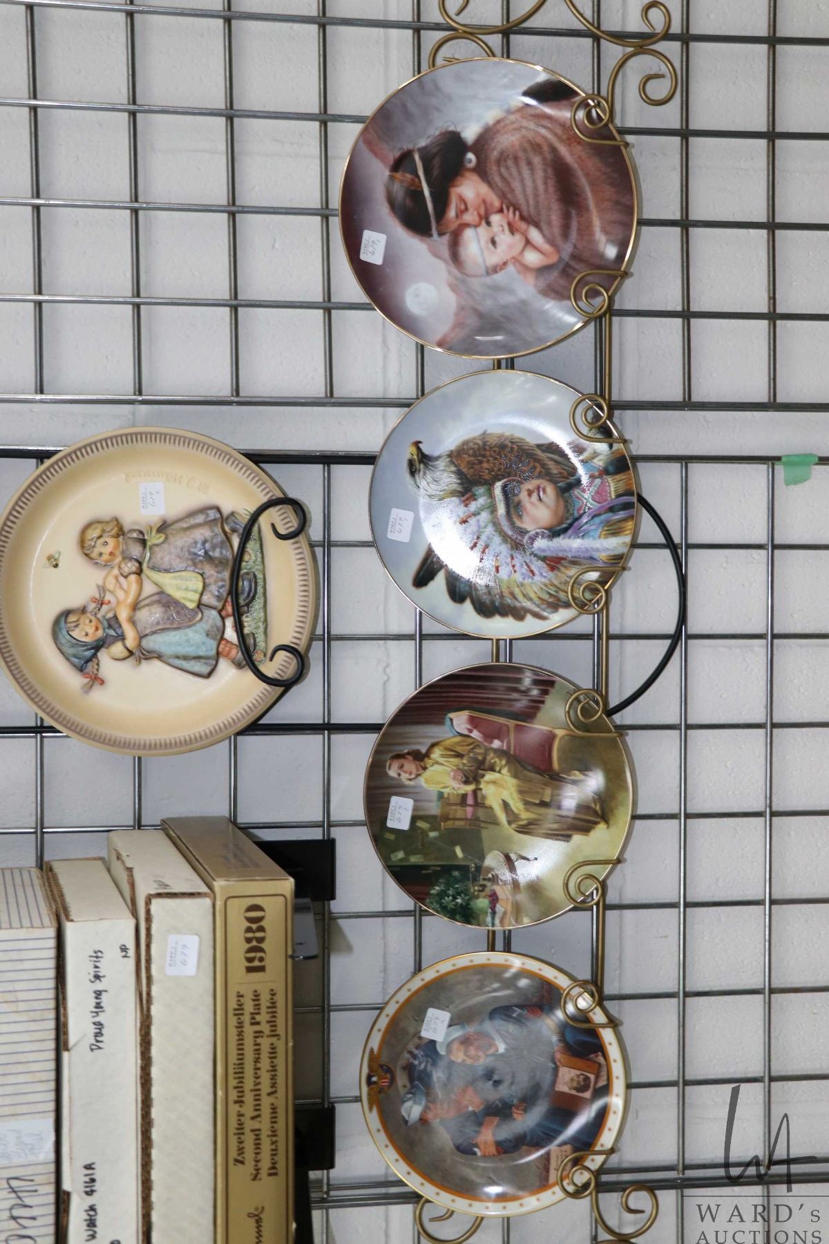 Seven collector plates including three Hummel, two native American, one Norman Rockwell and a Greta