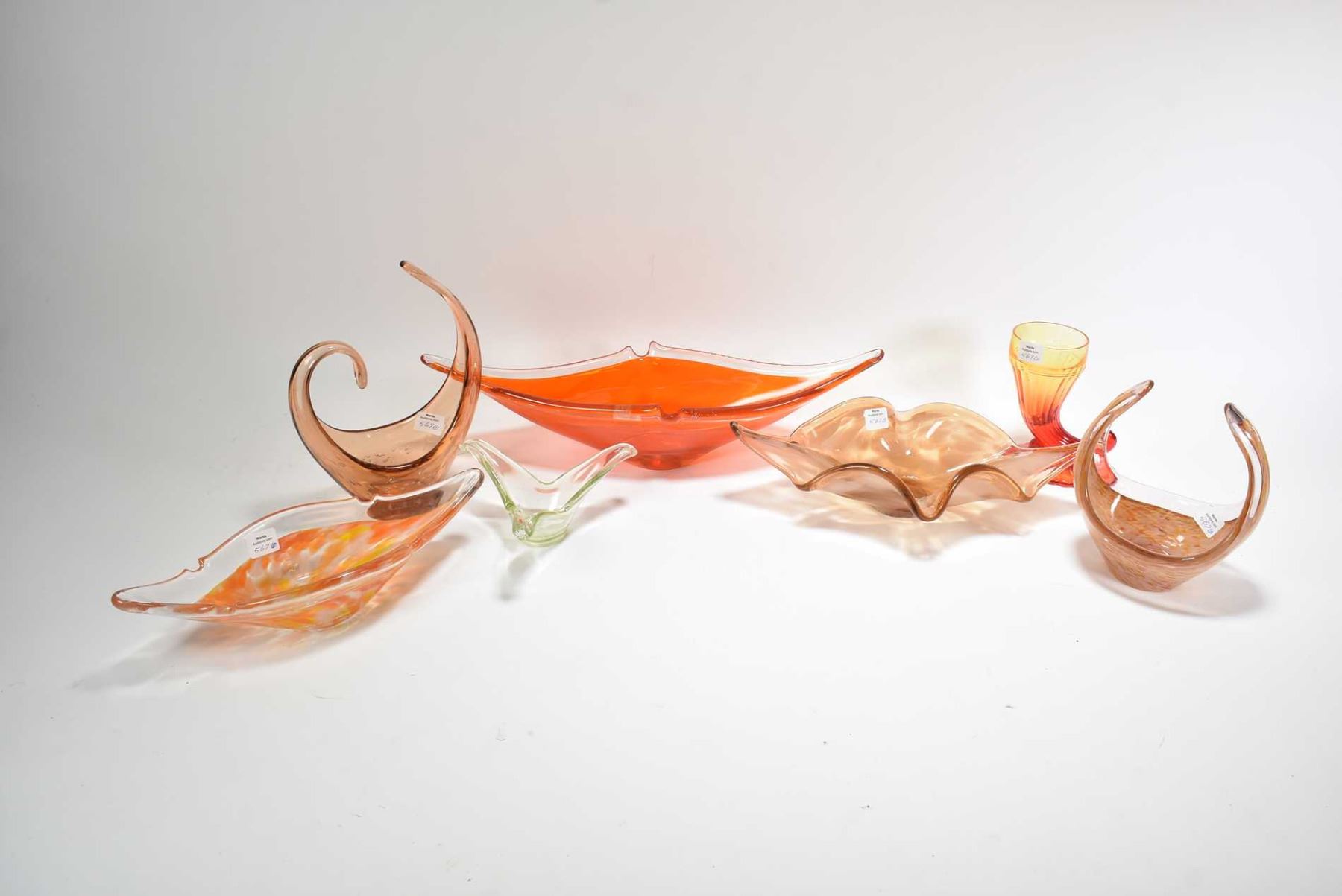 Seven pieces of mid century art glass including unmarked Alta Glass. Not available for shipping. Local pickup only