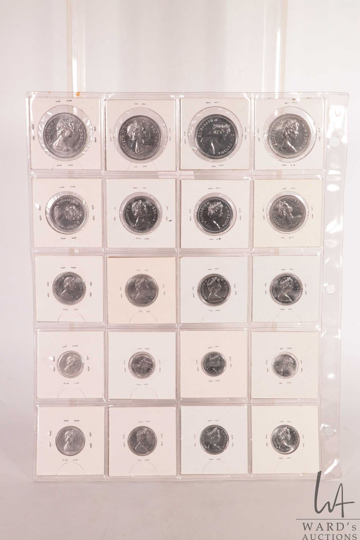 Sheet containing Canadian coins including dollar, fifty cent, quarter, dime and nickels for the year