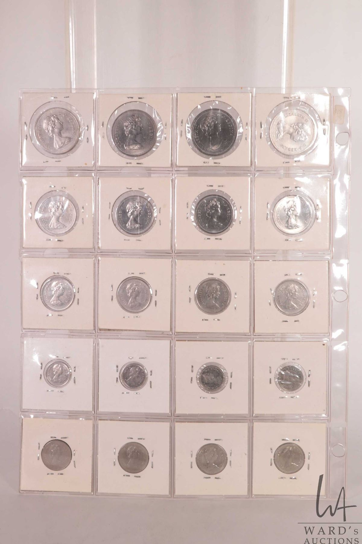 Sheet containing Canadian coins including dollar, fifty cent, quarter, dime and nickels for the year