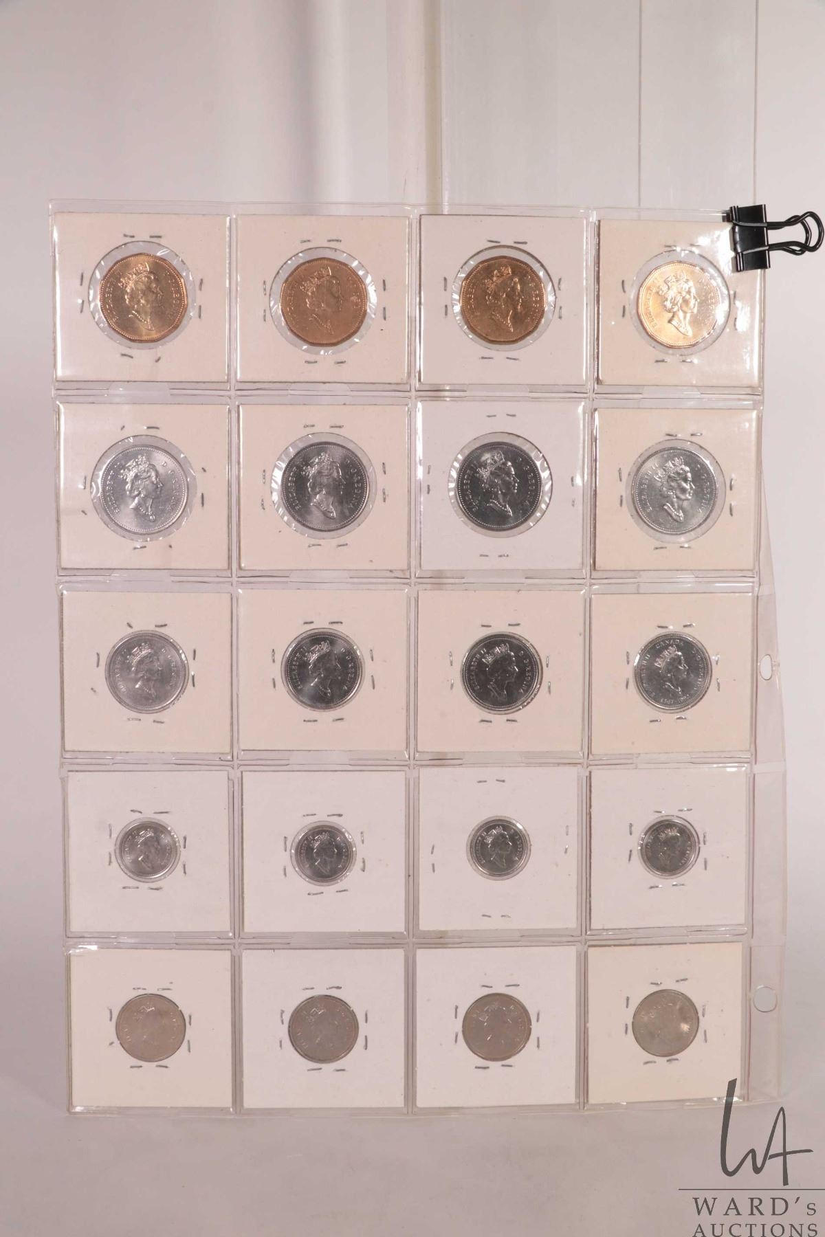 Sheet containing Canadian coins including dollar, fifty cent, quarter, dime and nickels for the year