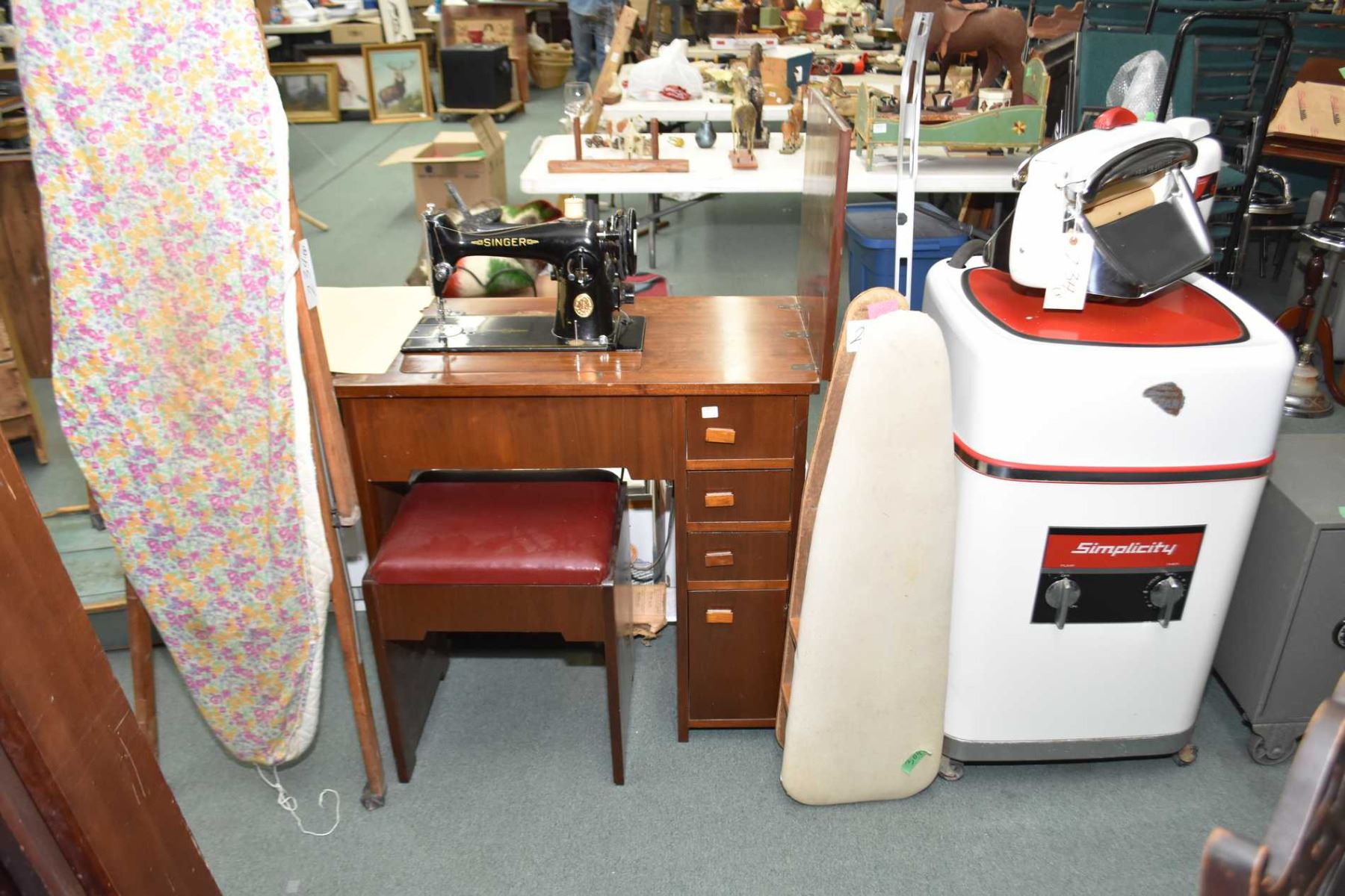 Simplicity electric washing machine with attached ringer plus a folding Beatty ironing board and a wooden sleeve board