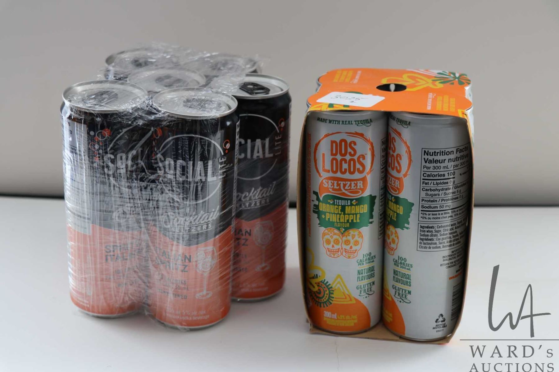 Six 355ml cans of Social Lite Cocktail Seltzer Spritz Italien / 5% ABV and 4 x 300ml cans of Dos Locos Seltzer Orange Mango Pineapple / 4.5% ABV Note: Alcohol cannot be insured by any courier in Canada. Local pick up is recommended. Canadian bidders only