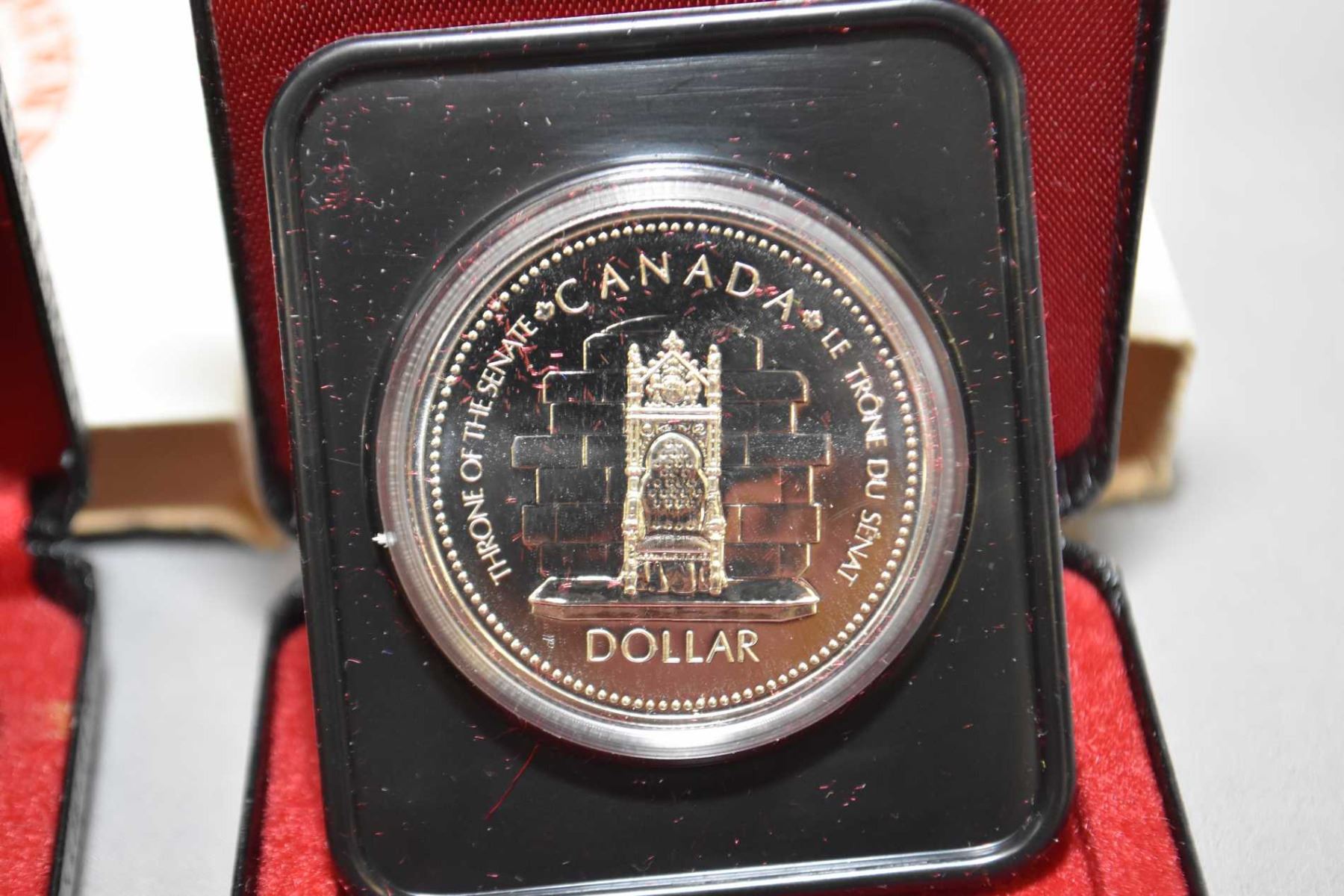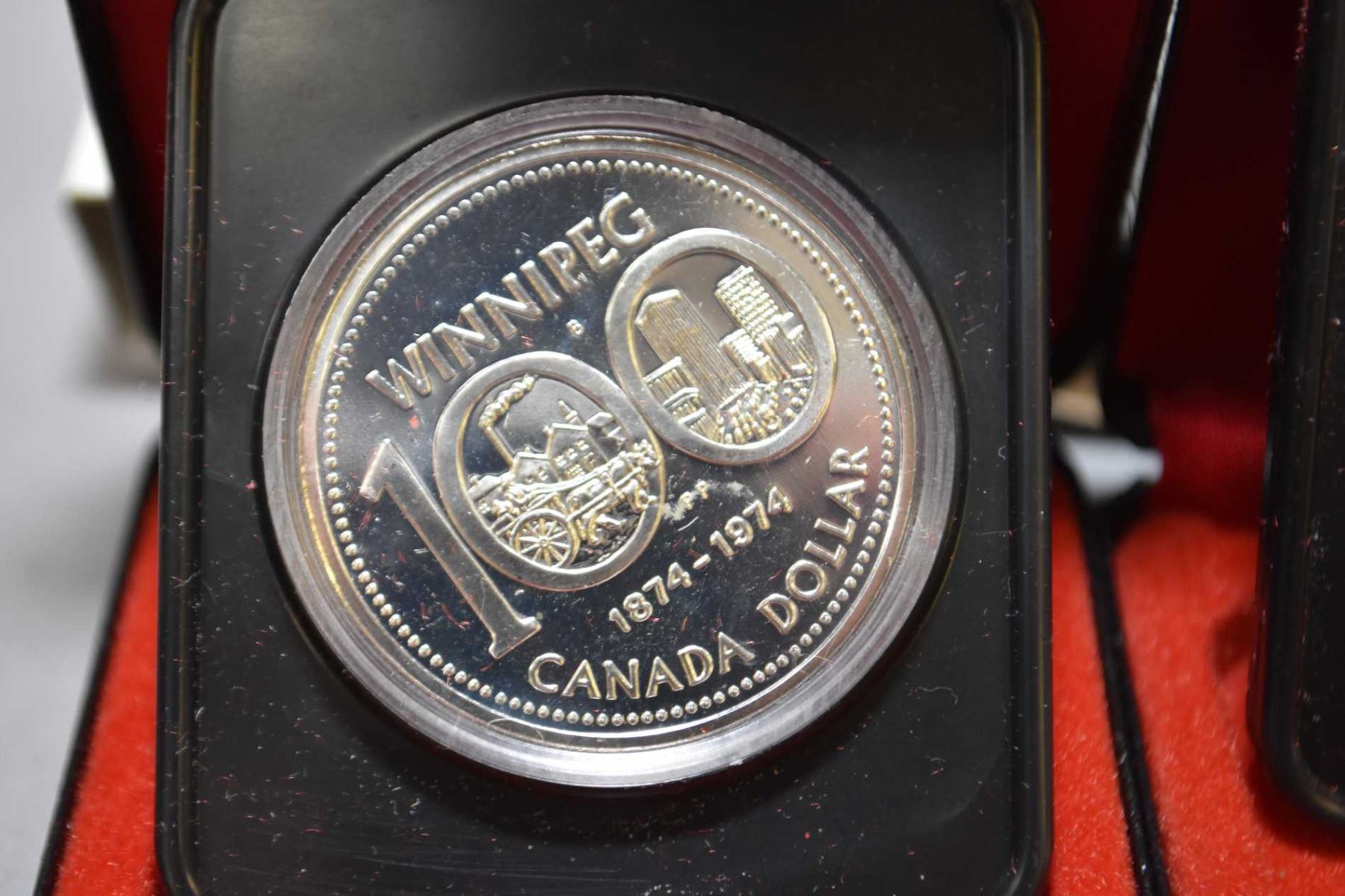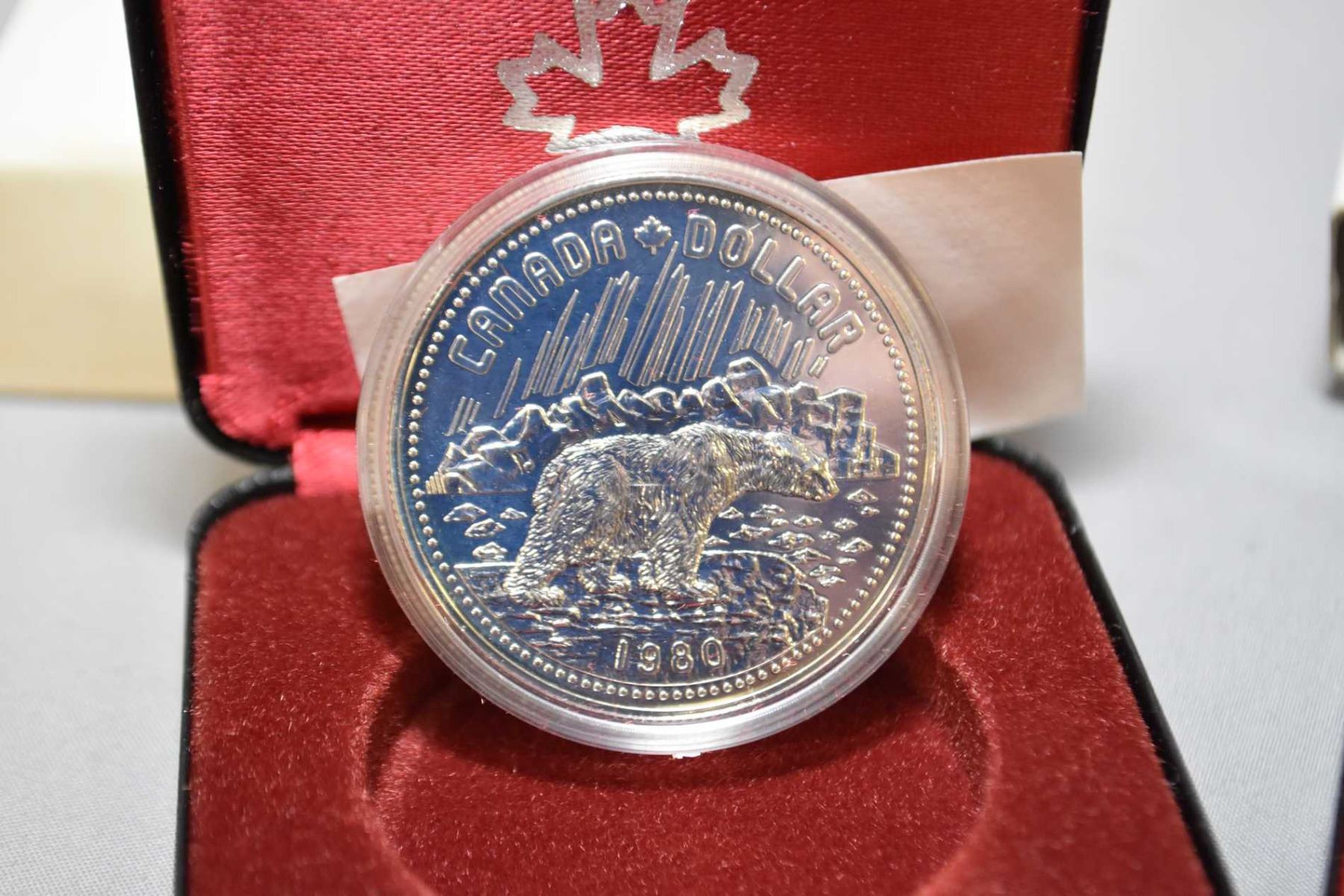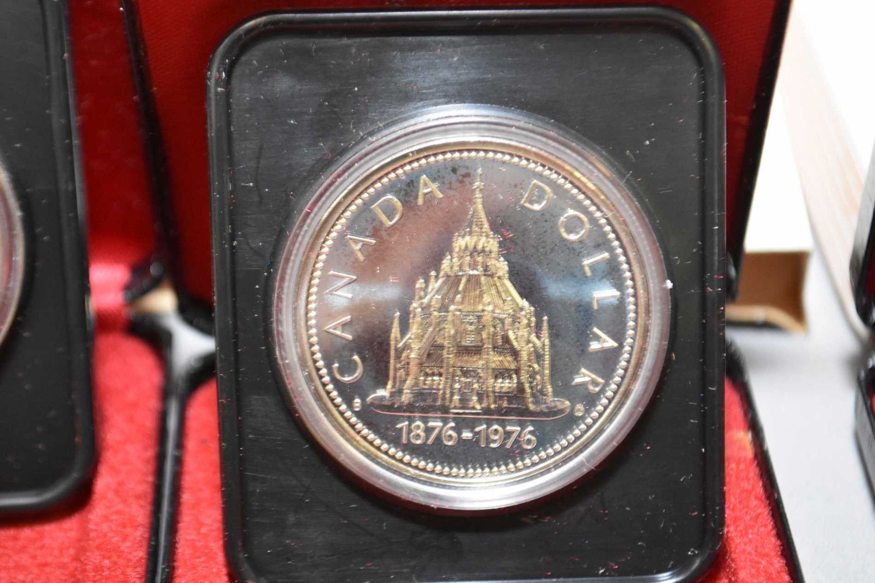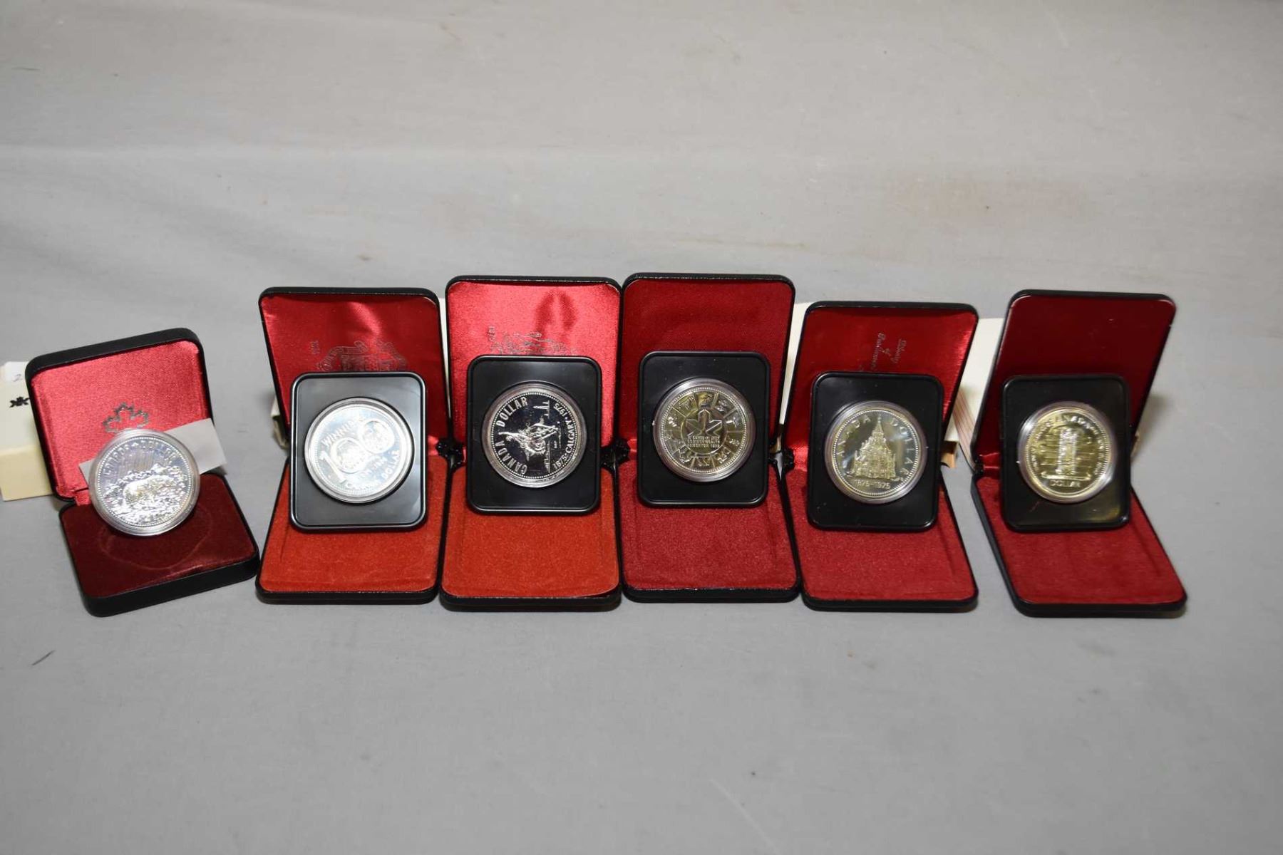 Six Canadian silver dollar coins including 1974, 1975, 1976, 1977, 1978 and 1980