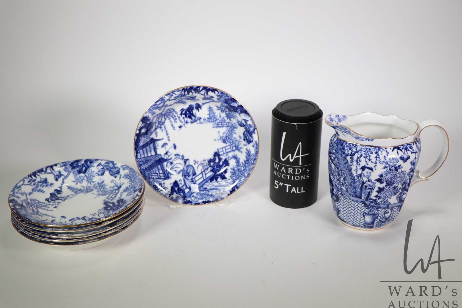 Six Royal Crown Derby "Mikado" shallow dessert bowls and a milk jug 5 1/2". Note: Not available for shipping. Local pickup only