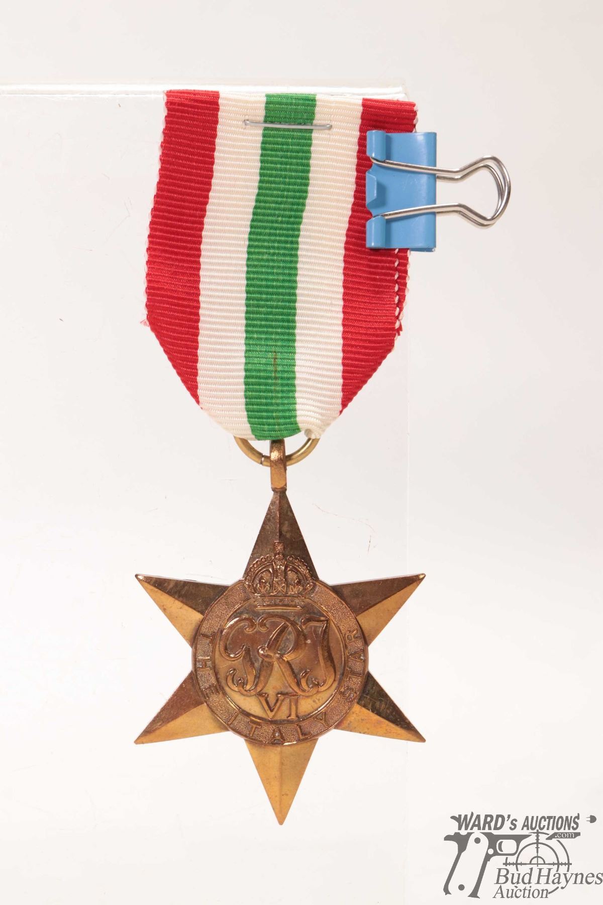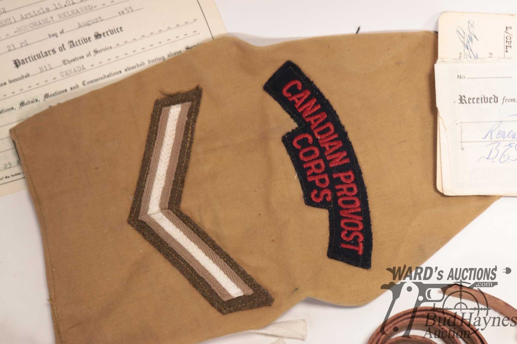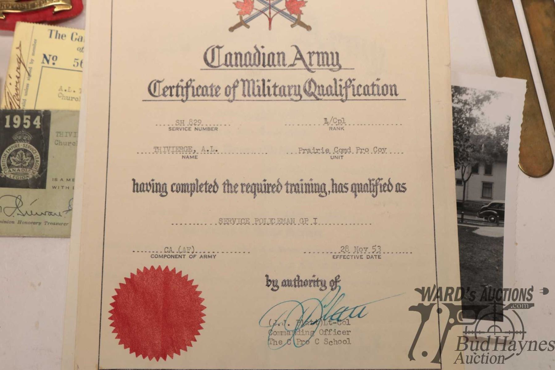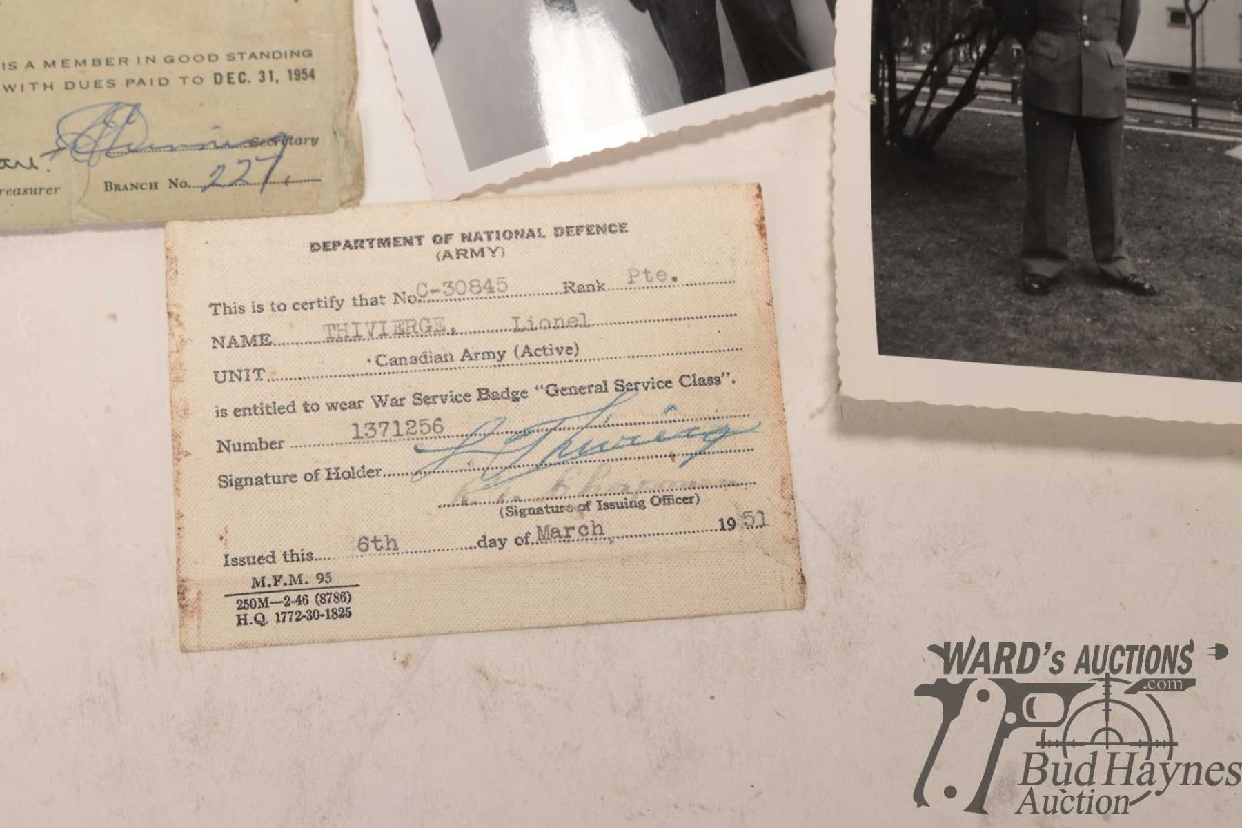 Six WWII replacement medals including 1939-1945 war medal, Canadian Volunteer Service medal. The Defence medal, 1939-45 Star, France and Germany Star and an Italian Star plus documents and photos related to Private Robert Norman Cann