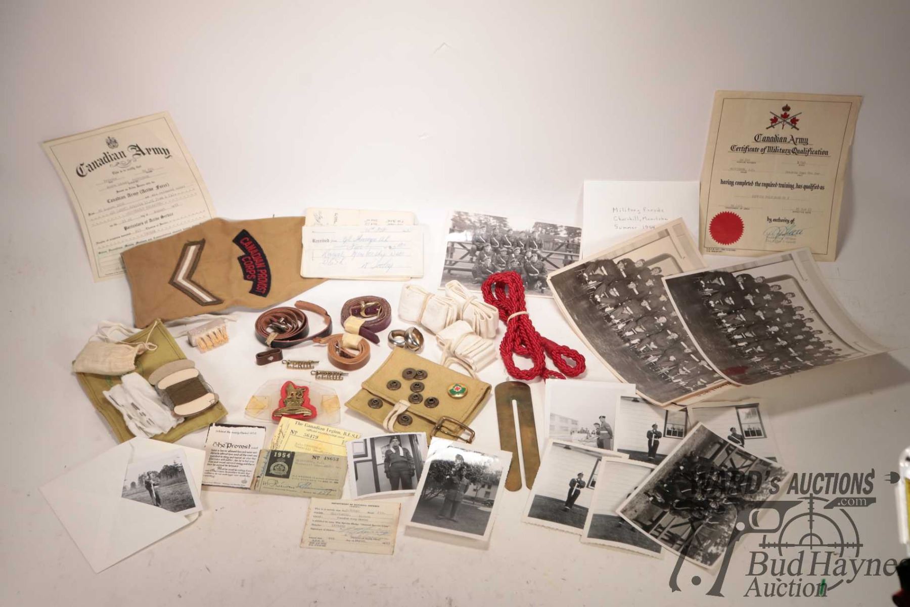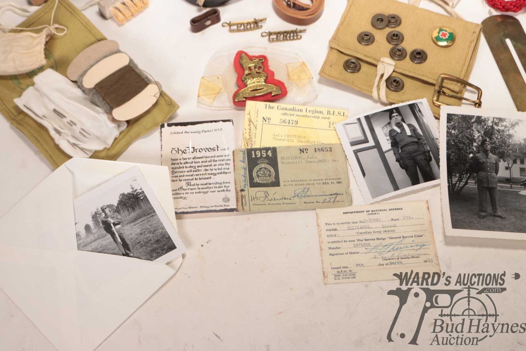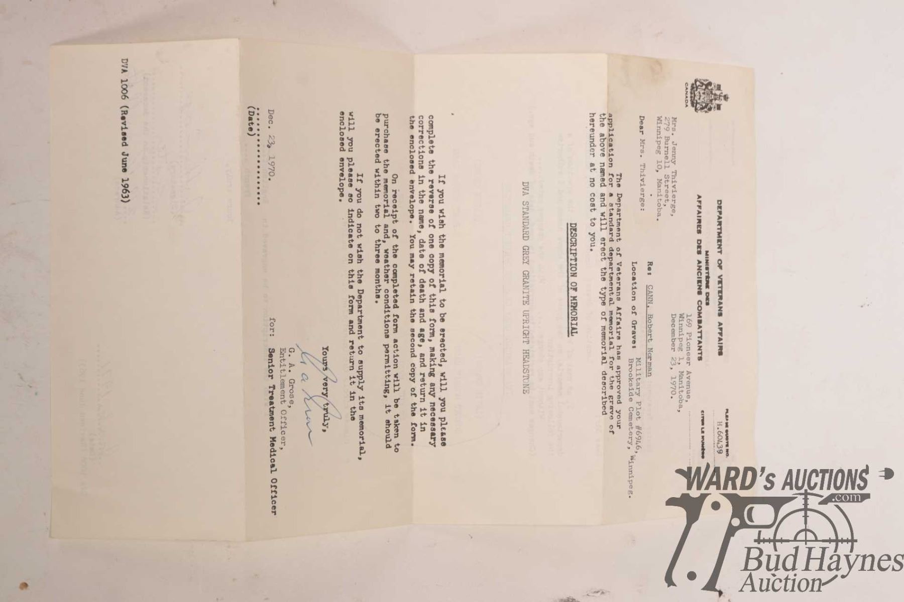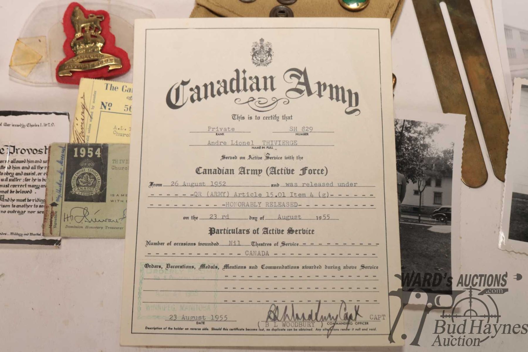 Six WWII replacement medals including 1939-1945 war medal, Canadian Volunteer Service medal. The Defence medal, 1939-45 Star, France and Germany Star and an Italian Star plus documents and photos related to Private Robert Norman Cann