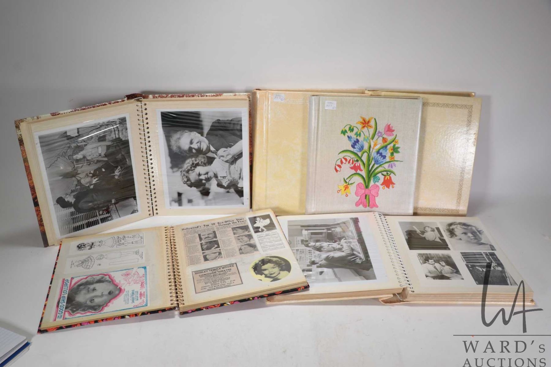 Six albums containing a selection of Shirley Temple photographs and ephemera including paper dolls, news clippings, studio black and white photographic prints etc.