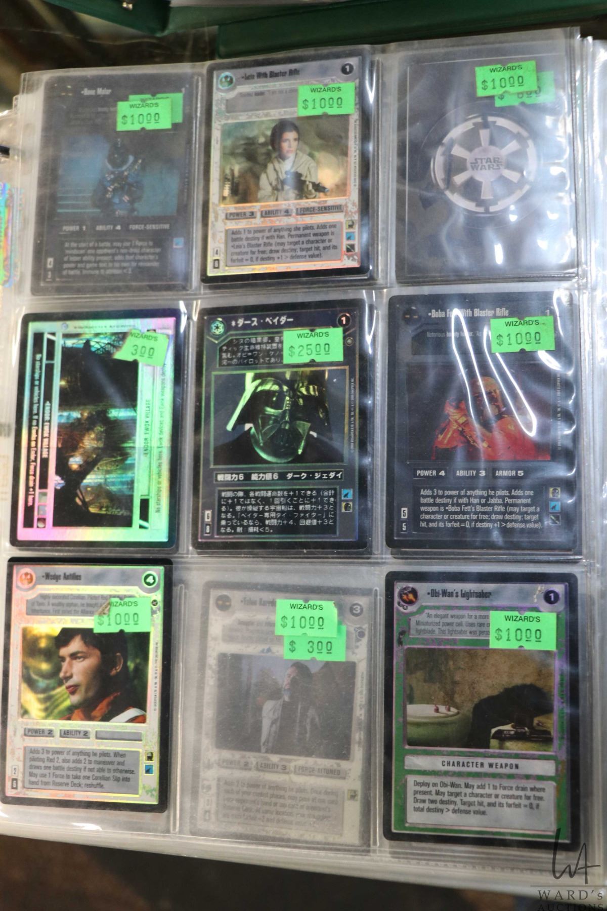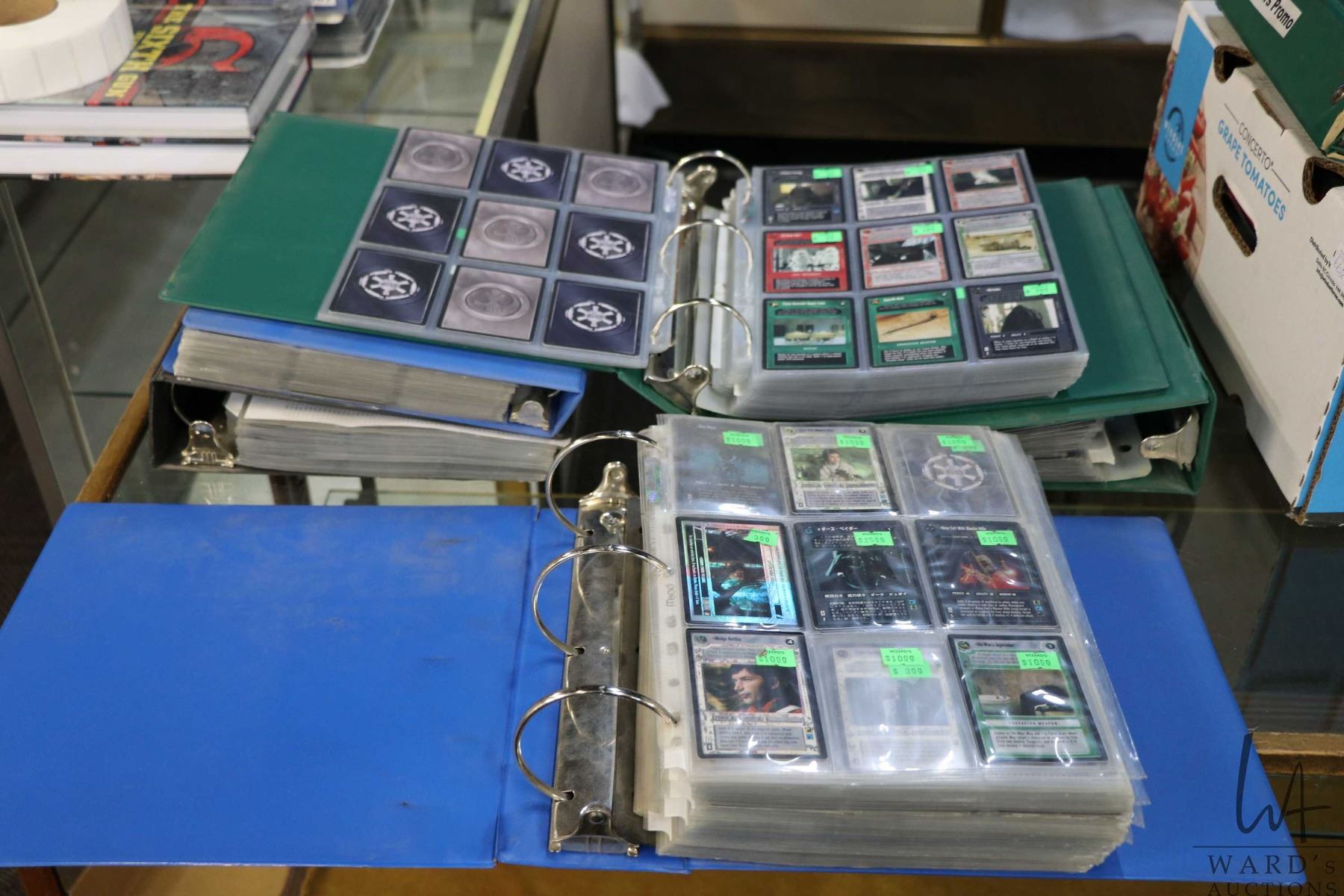 Six binders of Star Wars trading cards. Important: Pickup is in Edmonton. Long comic boxes (28 x 8 x 11.5 and 23kg) will be shipped in 2 boxes approximately 11 x 9 x 12 and 13kg each through Canada Post. Long boxes can be palletized for large invoices. Details to follow
