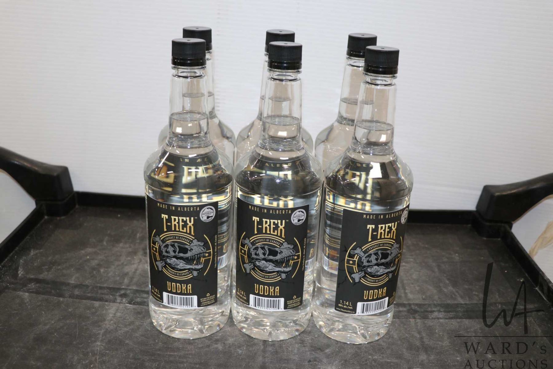 Six bottles of T-Rex Vodka 1.14L / 40% ABV Note: Alcohol cannot be insured by any courier in Canada. Local pick up is recommended. Canadian bidders only