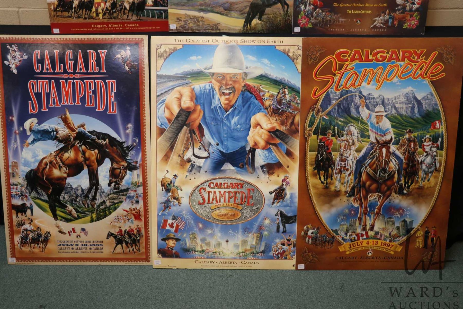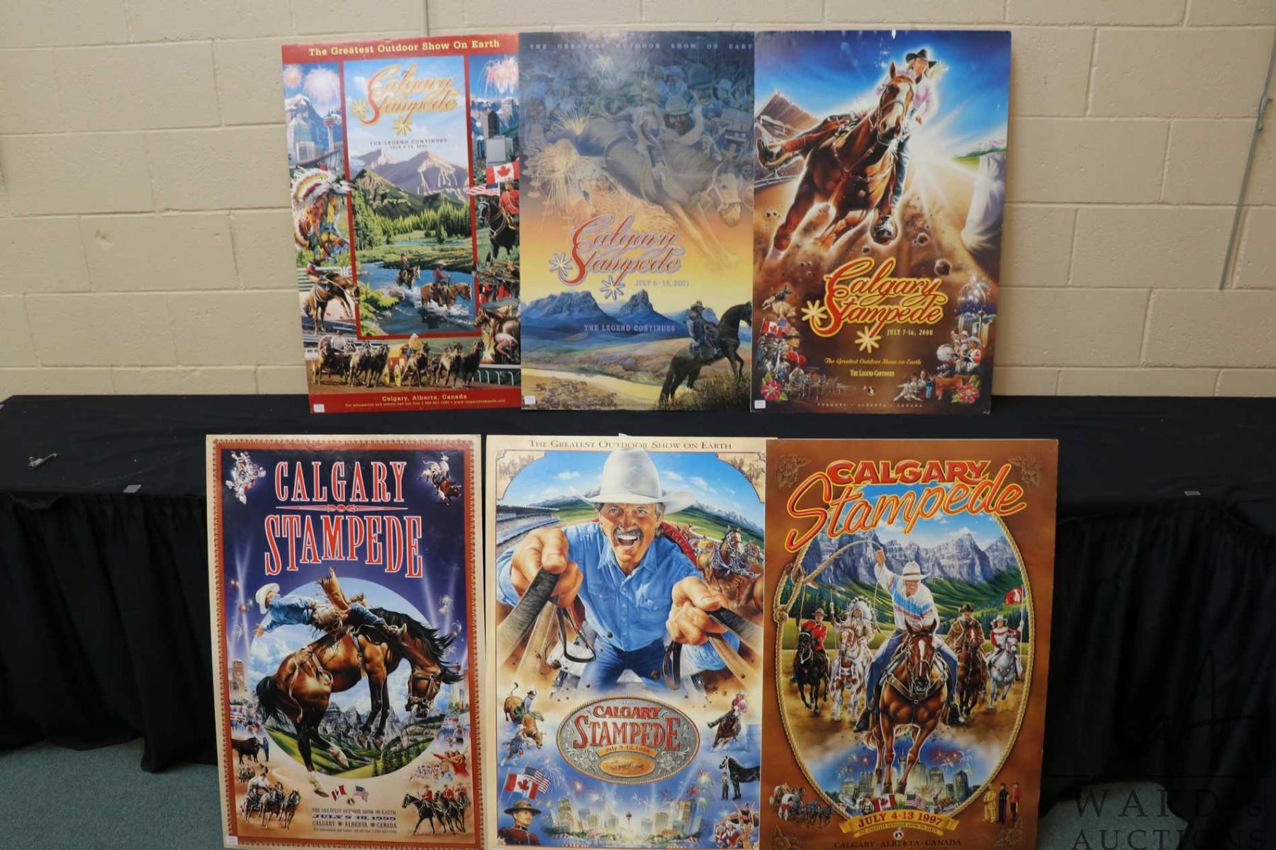 Six dry mounted on poster board Calgary Stampede posters including 19997-2002