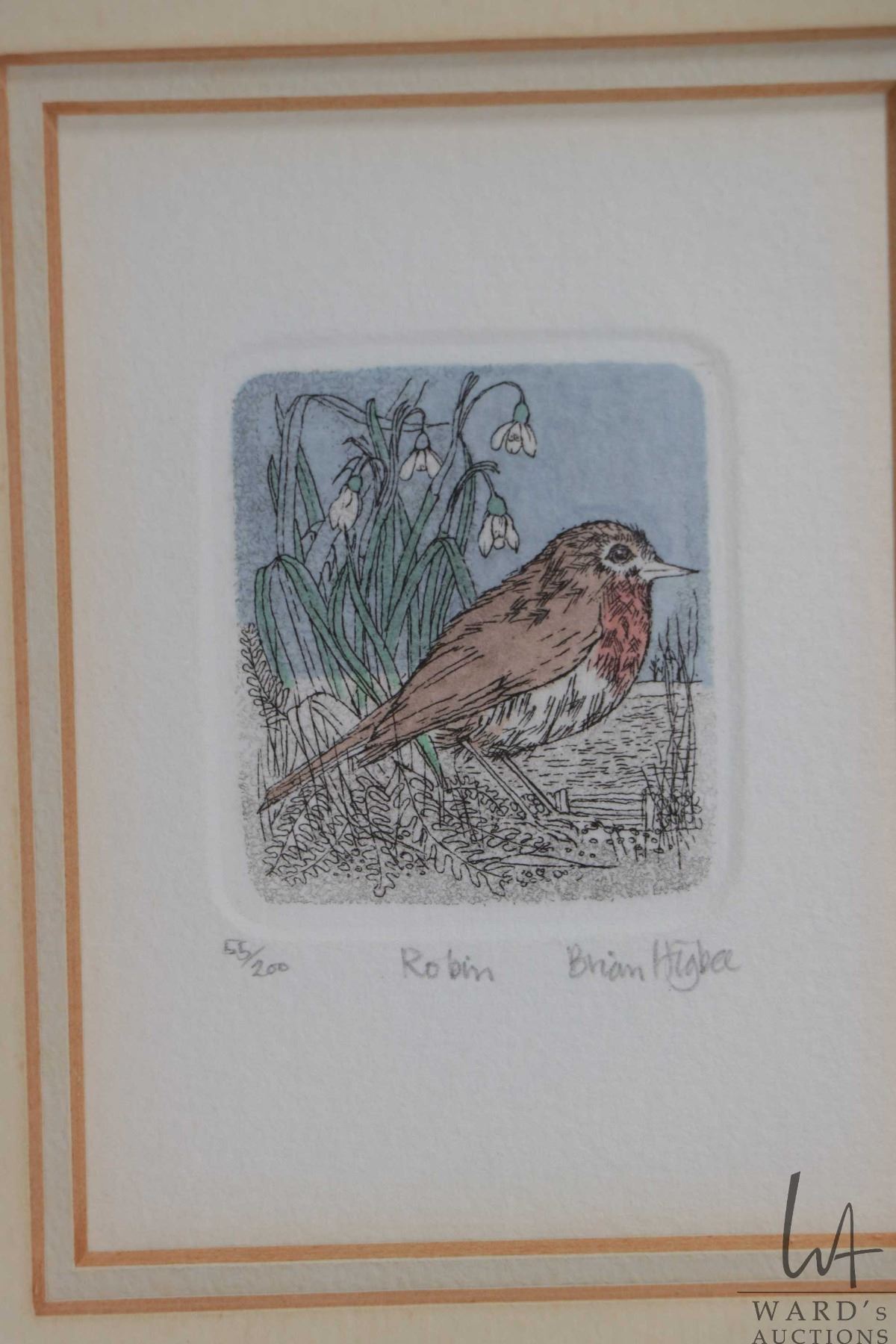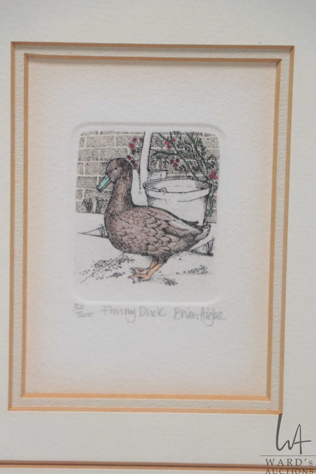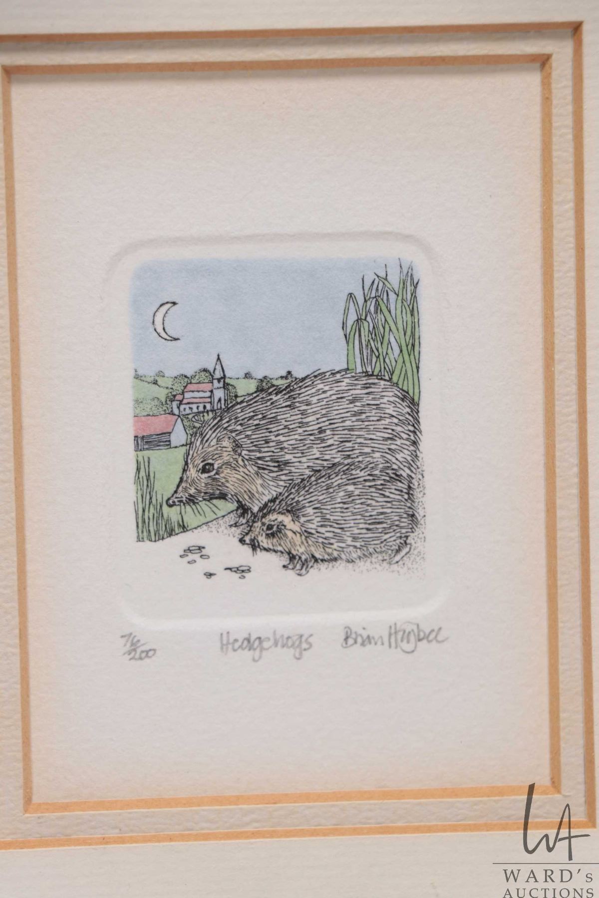 Six matched framed, limited edition miniature coloured etchings, all animal themed and all pencil signed by artist Brian Higbee, each out of 200 and each including frame 9 1/2" X 8 1/2"