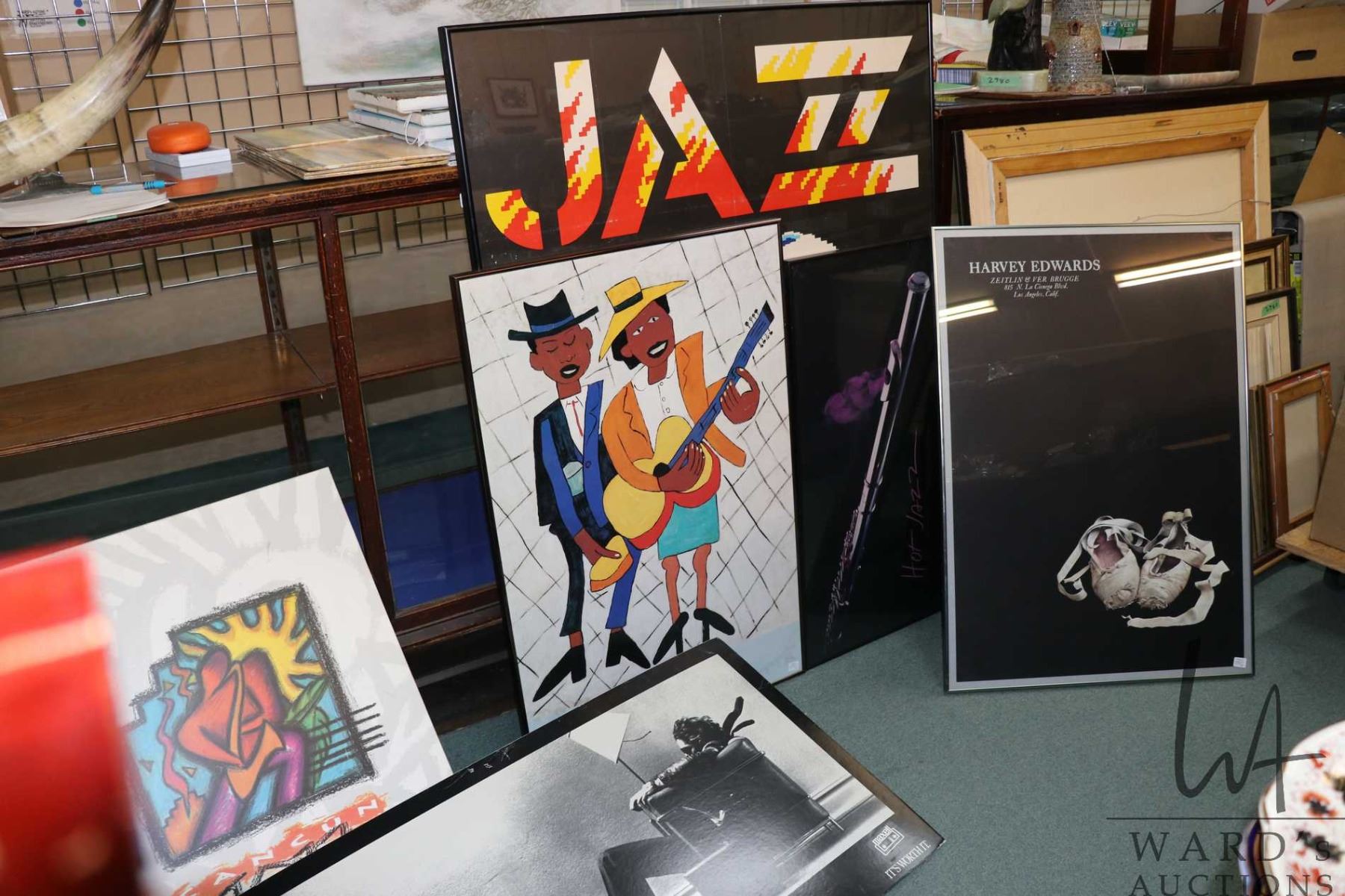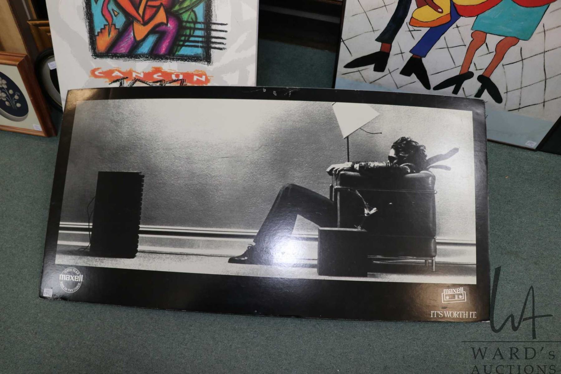 Six music themed posters including Jazz Festivals, Maxell advertising etc. Note: Shipping not available for these items. Local pick-up only.