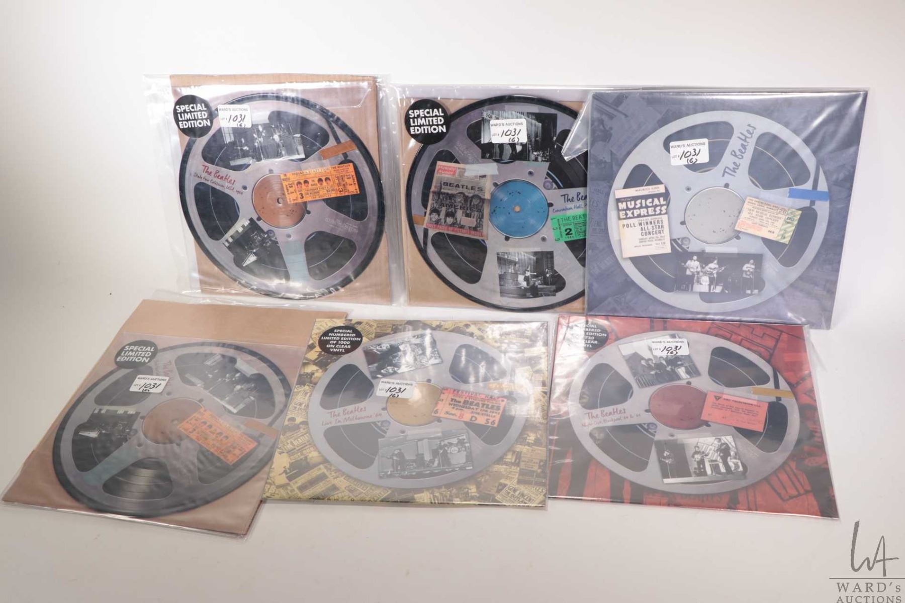 Six reel to reel themed picture discs LPs some without covers including "State Fair USA 1964", "New Musical Express" marked ?Made in EU?