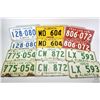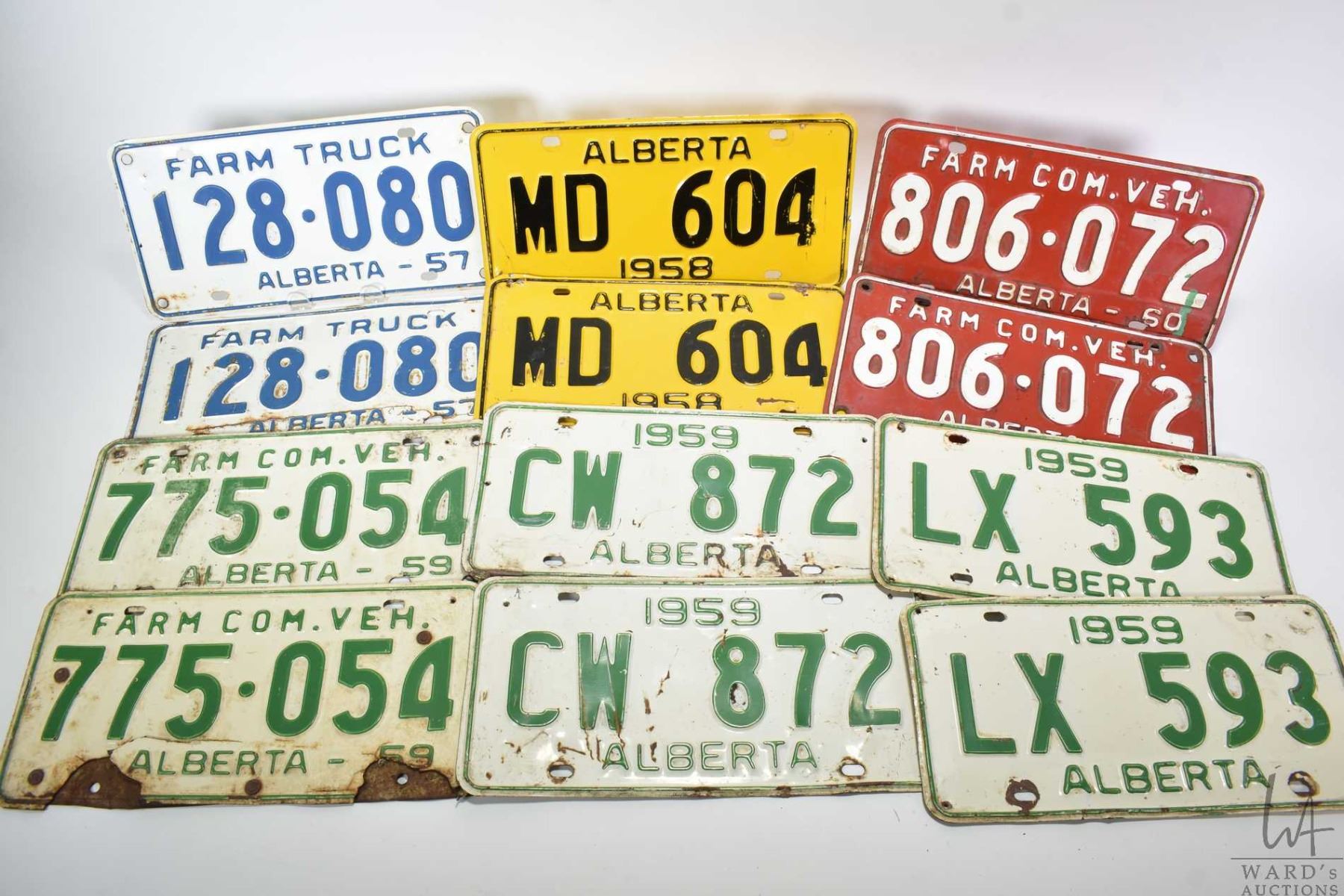 Six sets of paired Alberta license plates dating 1957-1960, twelve plates in total