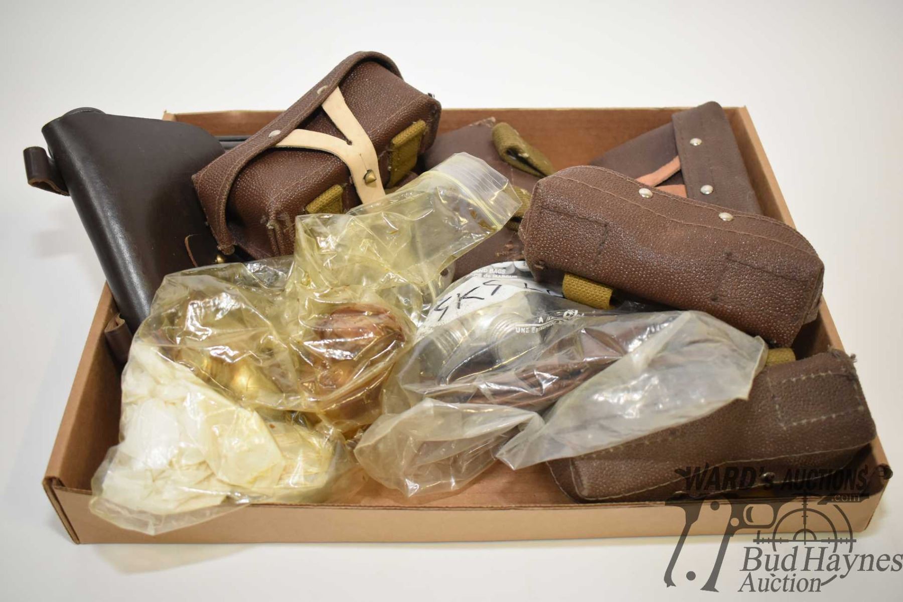 Six vintage ammo pouches, luger holster and four Six vintage ammo pouches, luger holster and four oi