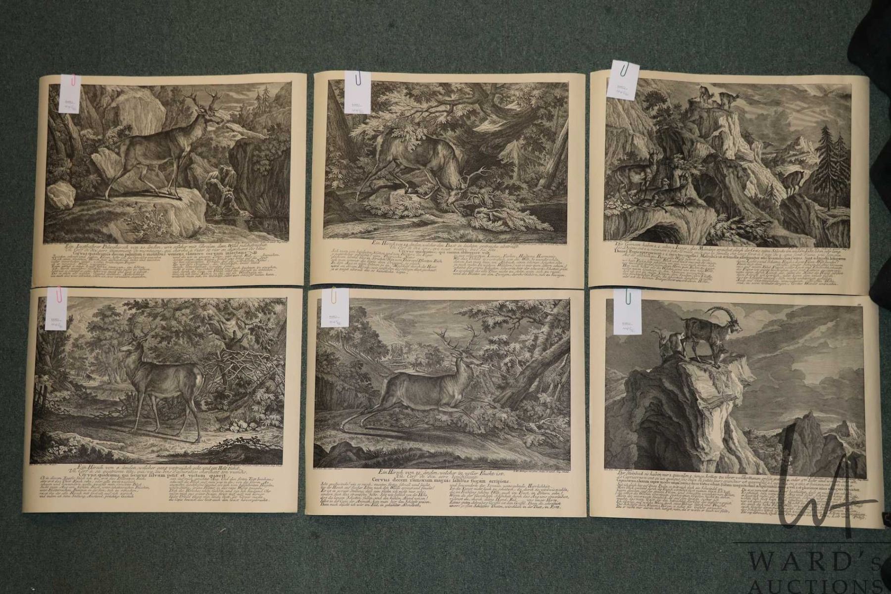 Six vintage prints from German etchings of stags, deer and mountain goats, each page 14" X 18"