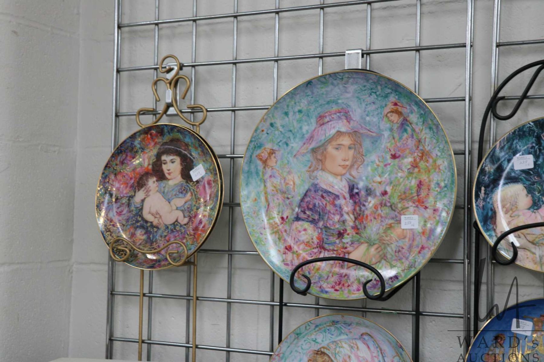 Sixteen Edna Hibel collector's plates including a variety of series, twelve including original boxes. Note: No shipping for this lot. Local pickup only