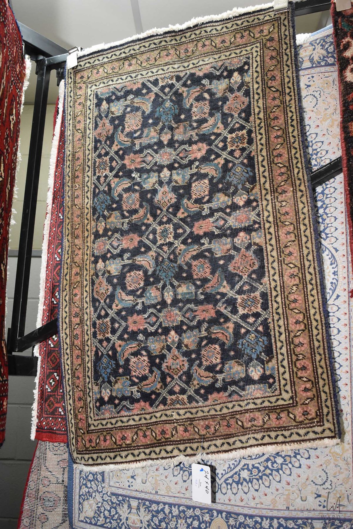 Small 100% handmade scatter rug in shades of blue, taupe and pink etc. 24" X 40"