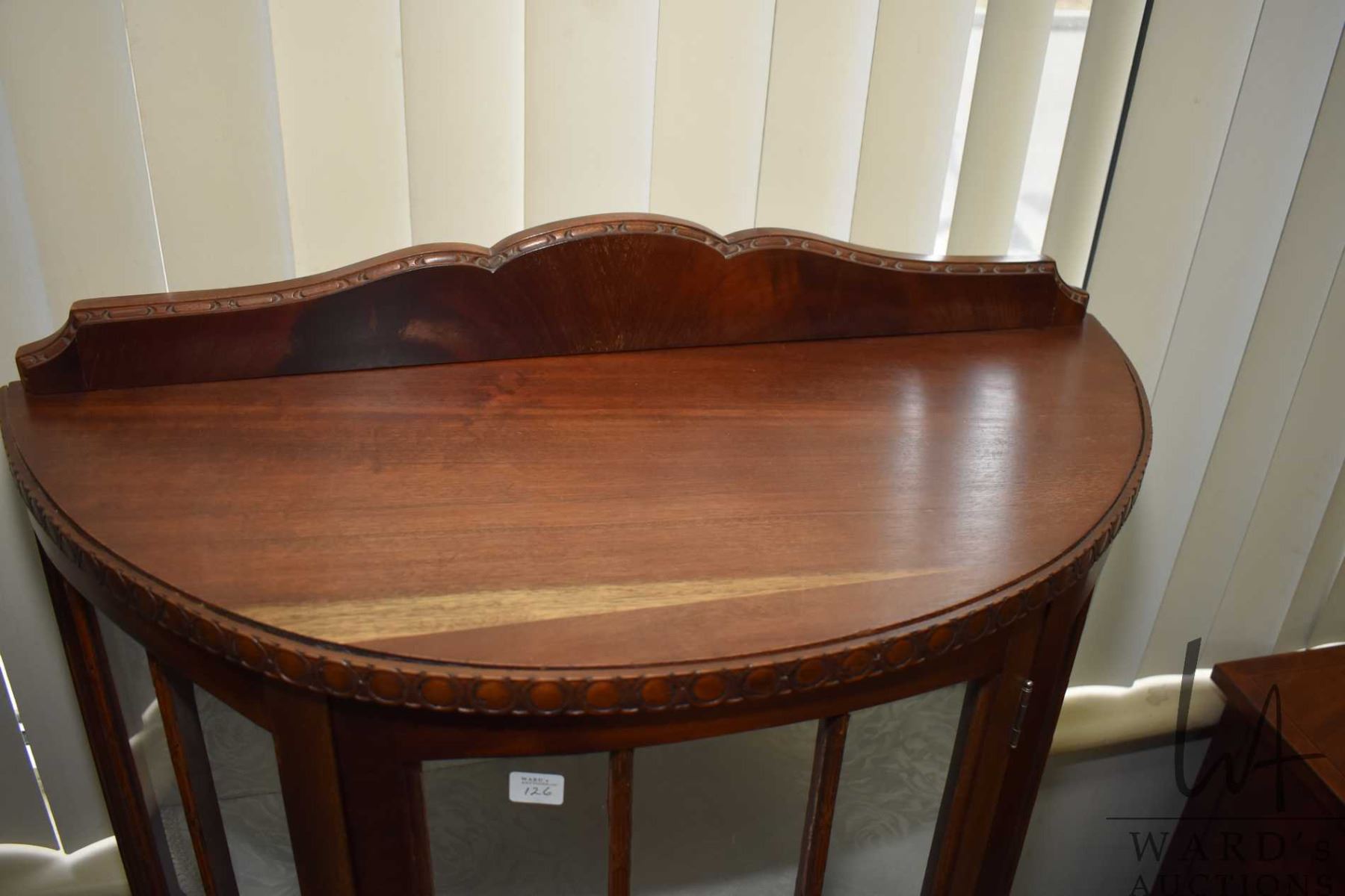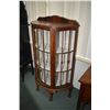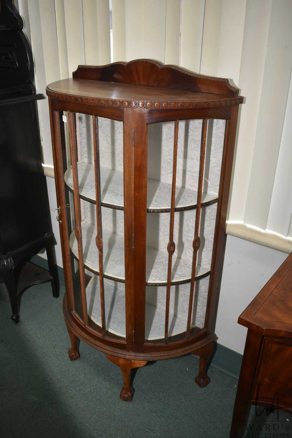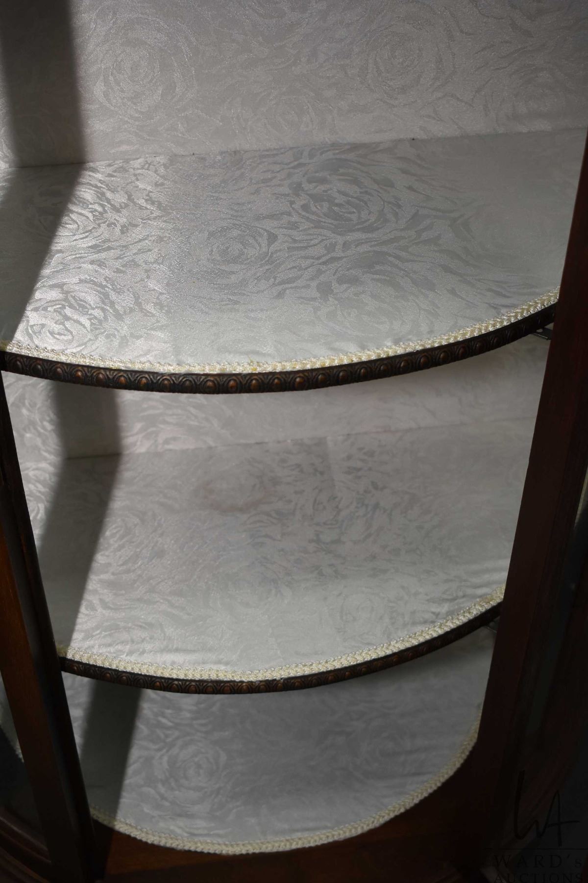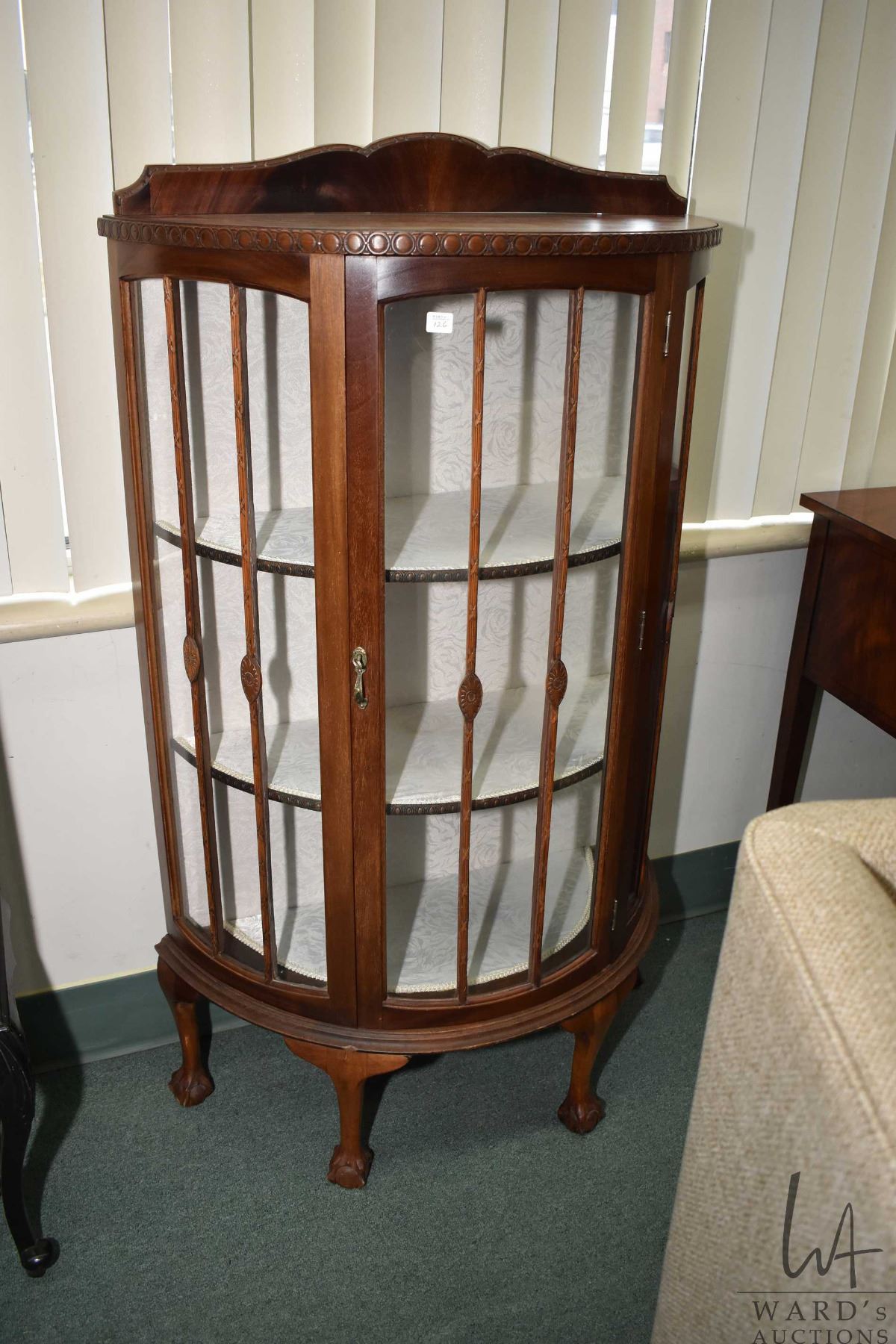 Small single door curved curio with carved ball and claw feet, 51" H X 30" W X 14" D