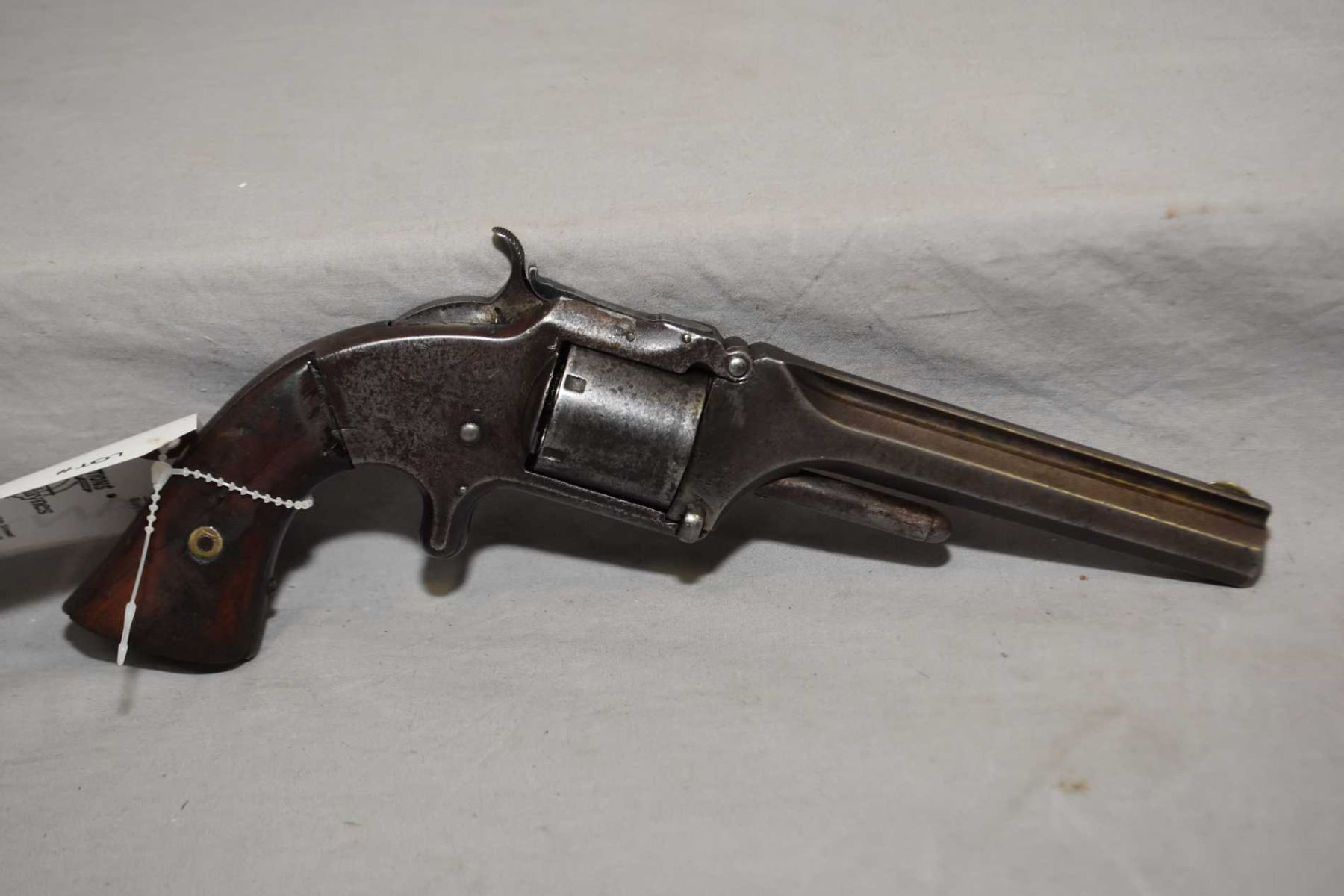 Smith & Wesson Model No. 2 Old Model .32 Rimfire Cal 6 Shot Spur Trigger Revolver w/ 5" bbl [ worn walnut grips, blued finish fading to grey in some areas, Circa 1861 - 1874 ] Ser # 4R ANTIQUE NO PAL REQ