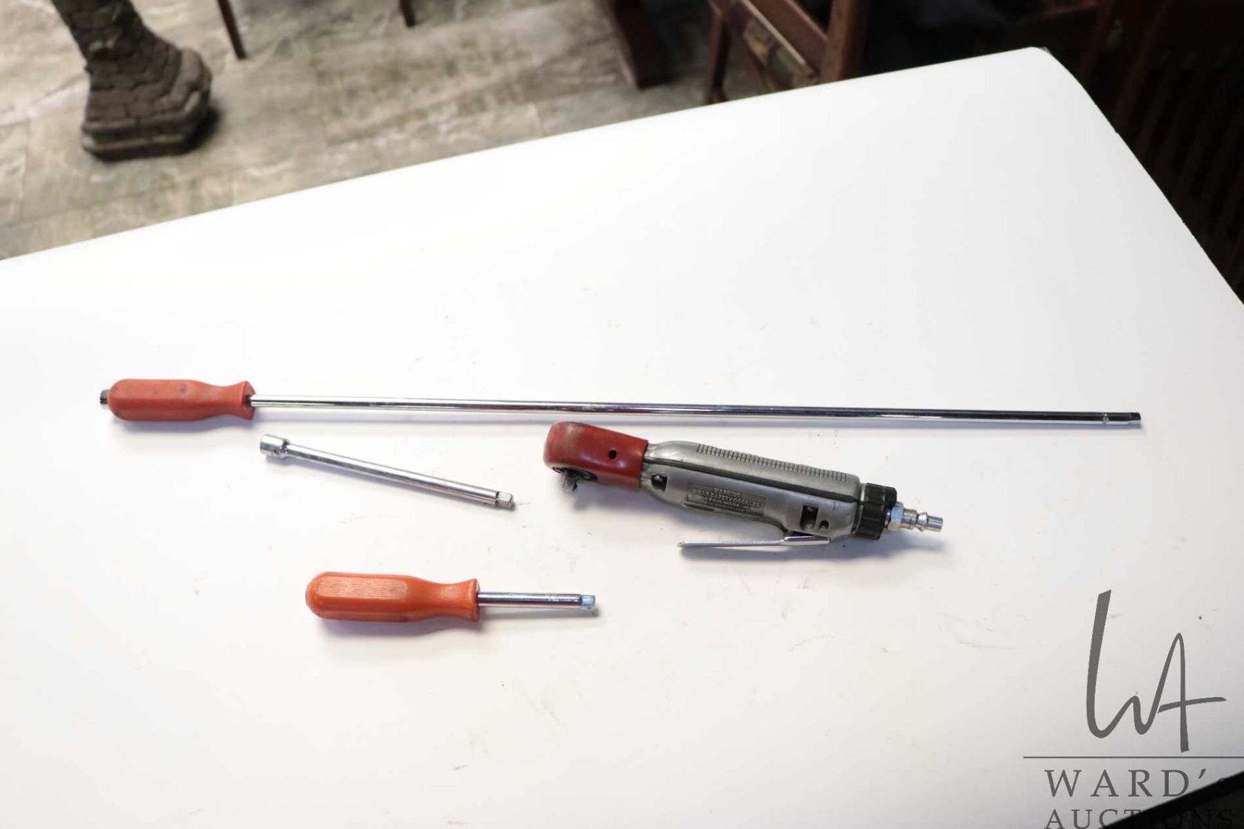Snap-On 1/4" drive air ratchet plus two Mac extensions, 6" and a 24" and an impact driver