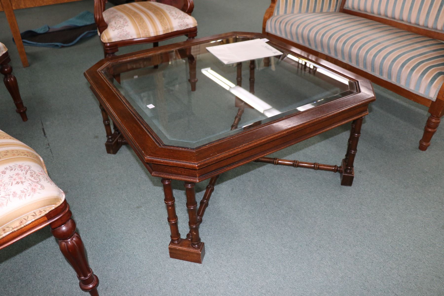 Square Georgian Grace coffee table with glass top 680/681-316, made by Kauffman, includes original sales brochure, 36" X 36"