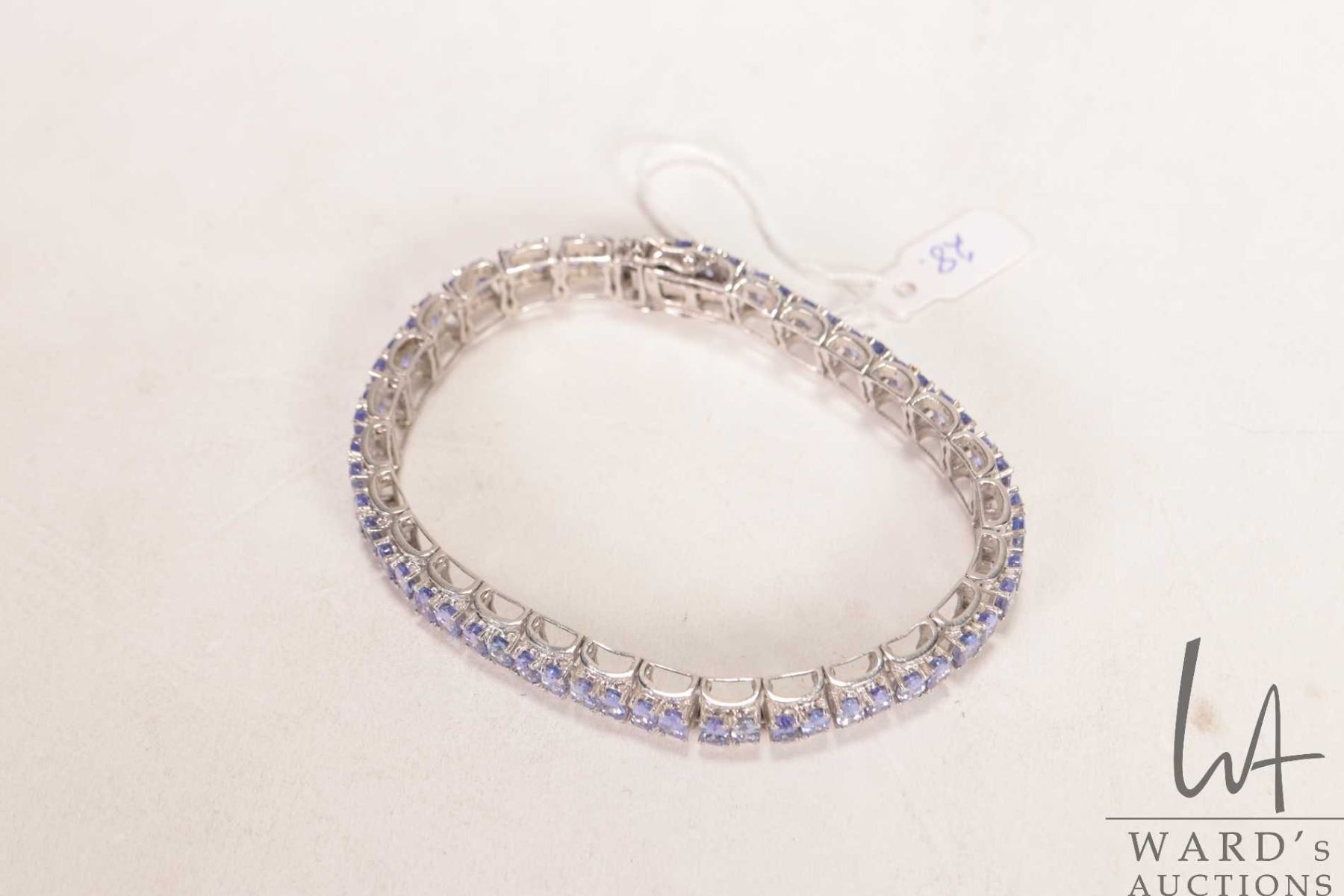 Sterling silver bracelet set with electronically tested tanzanite gemstones, 7 1/2"