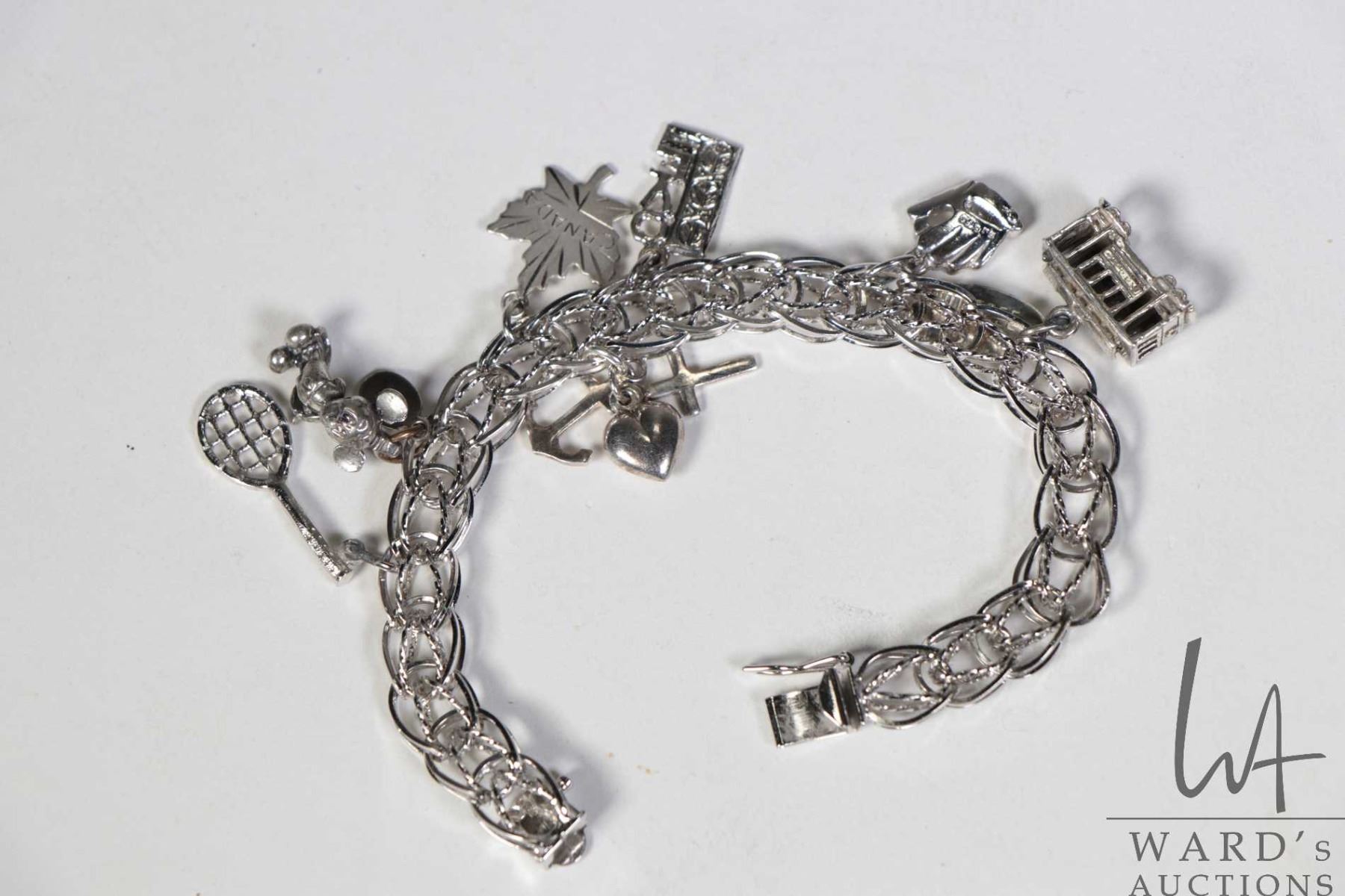 Sterling silver charm bracelet with seven charms