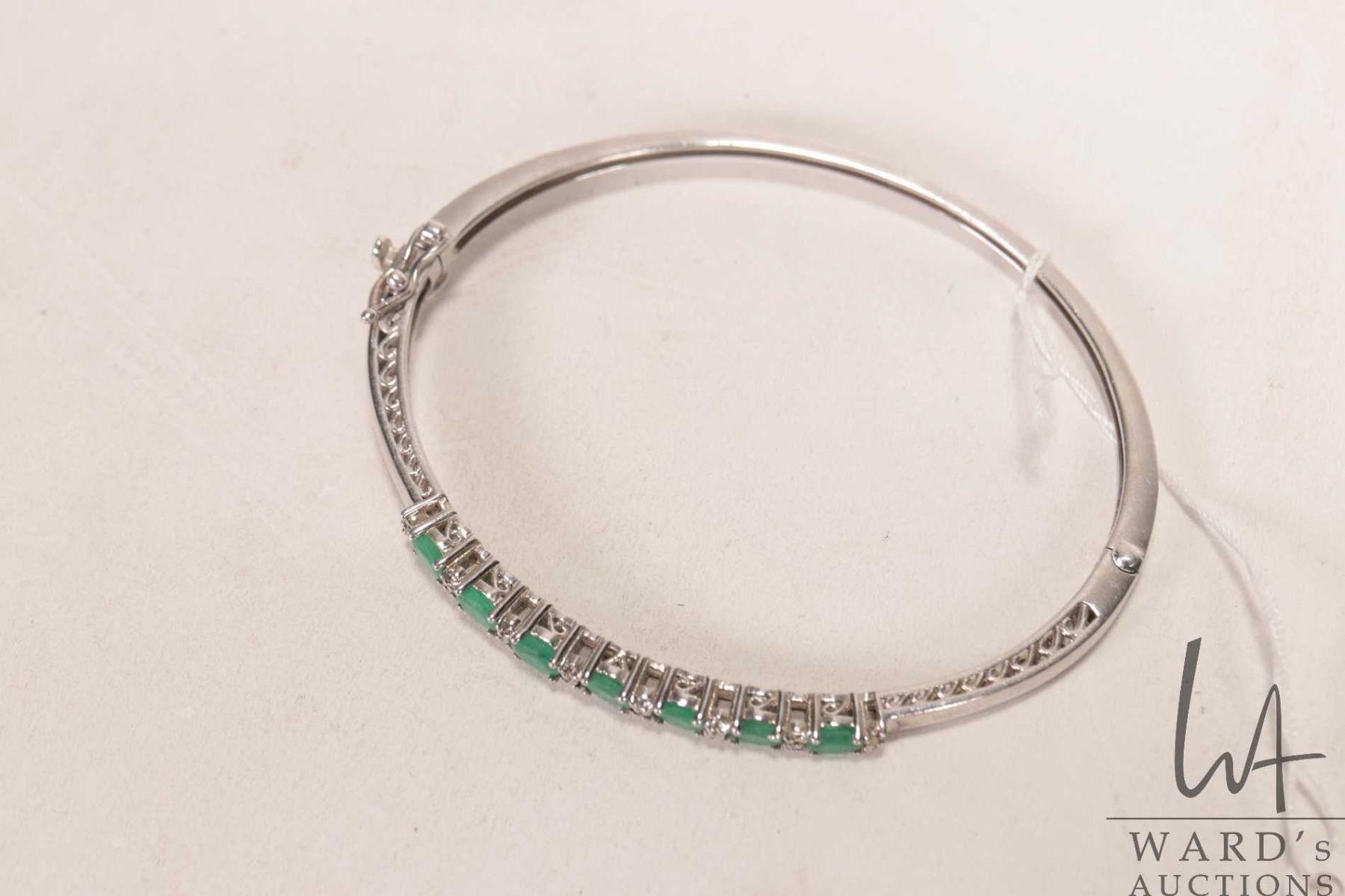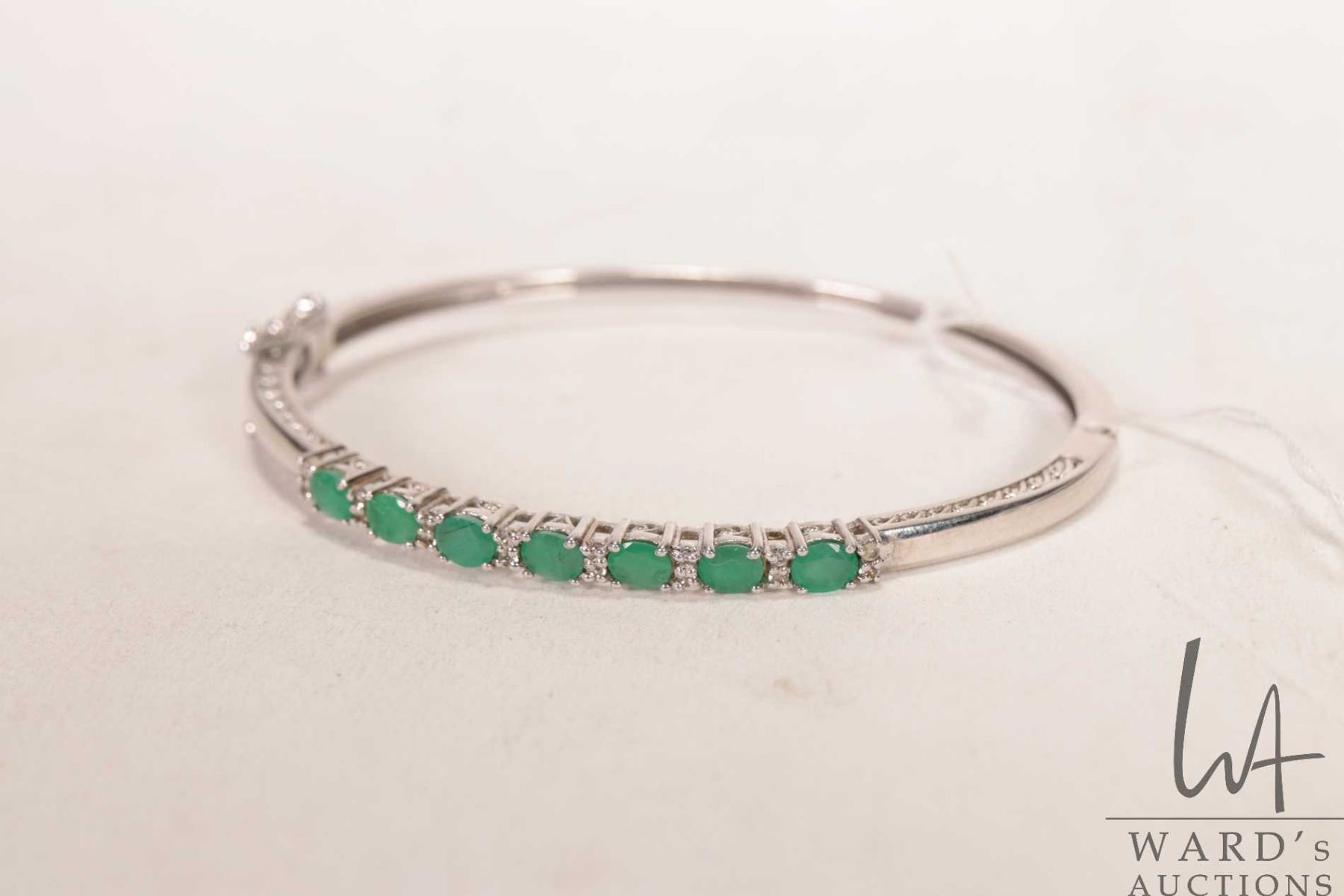 Sterling silver hinged bracelet set with electronically tested gemstones